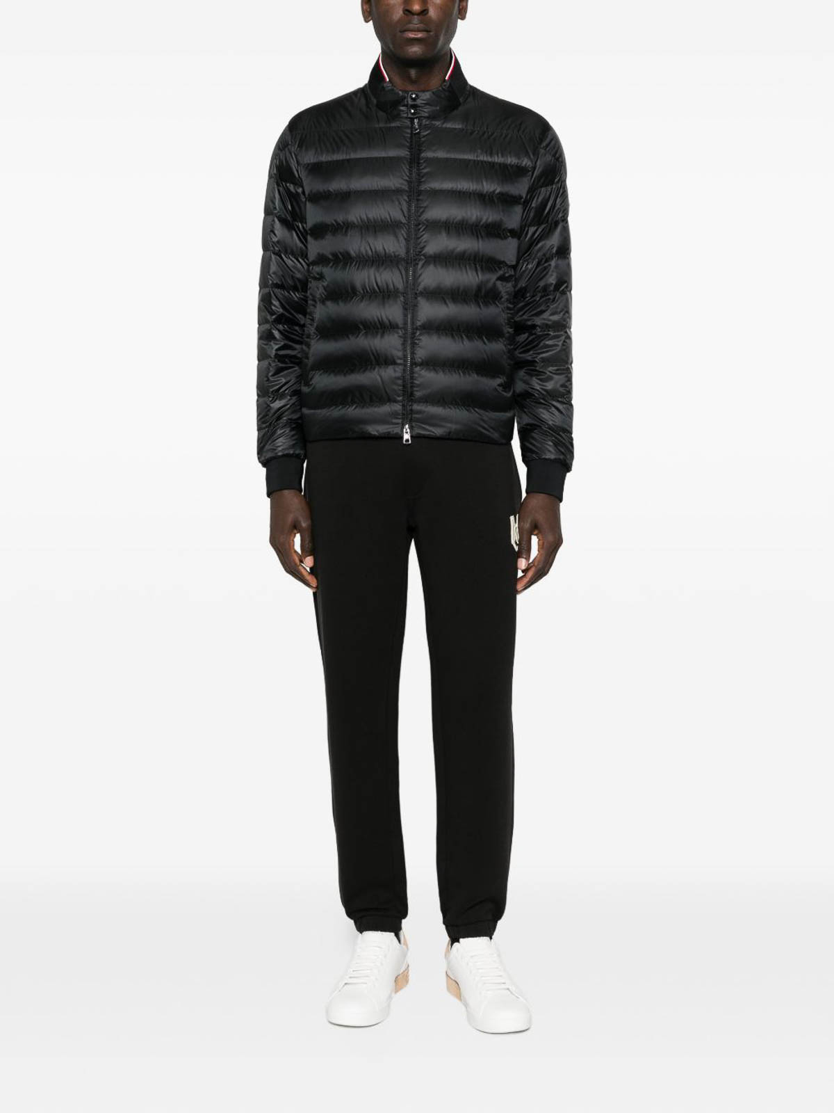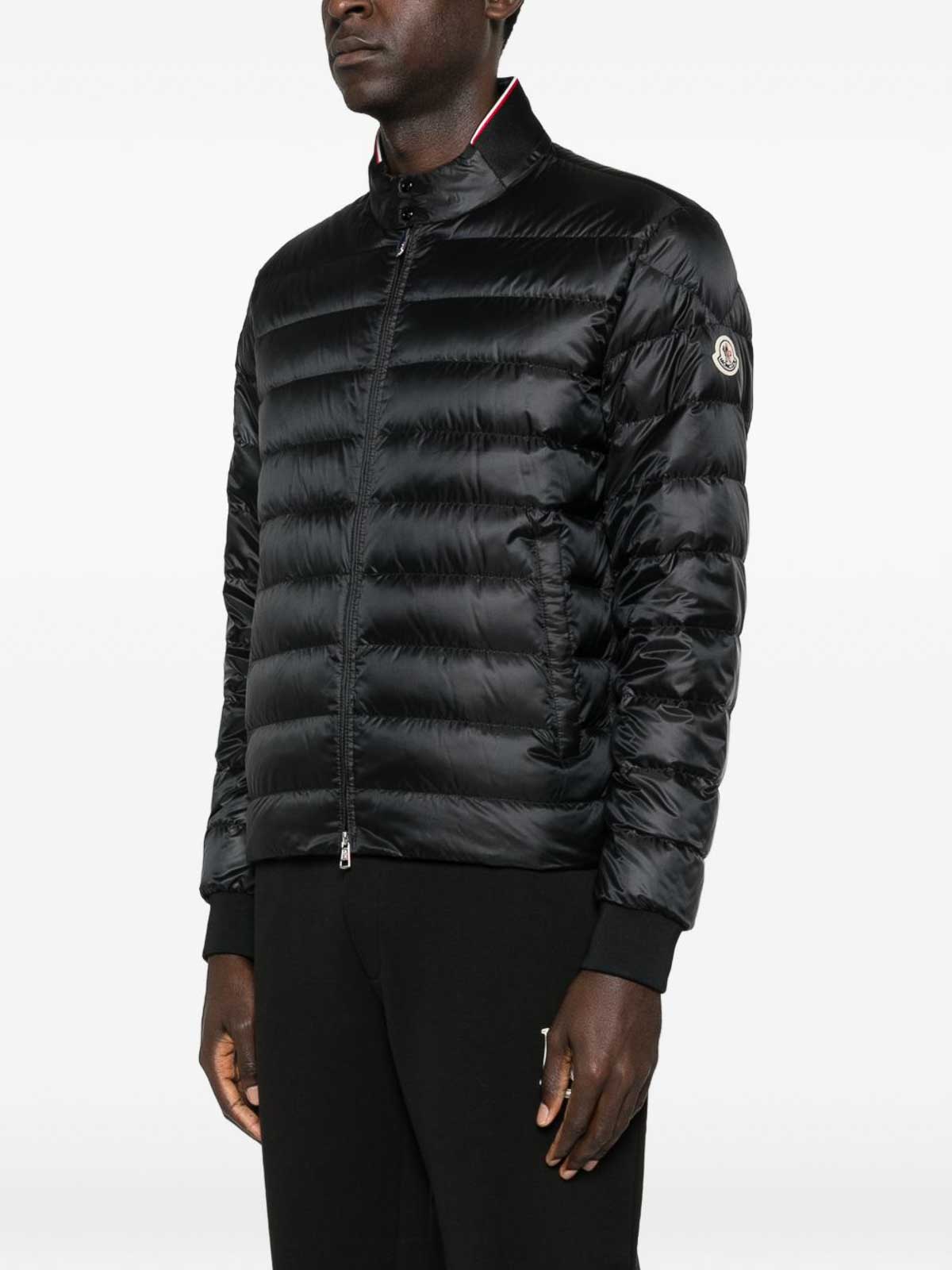 Black quilted down jacket by moncler