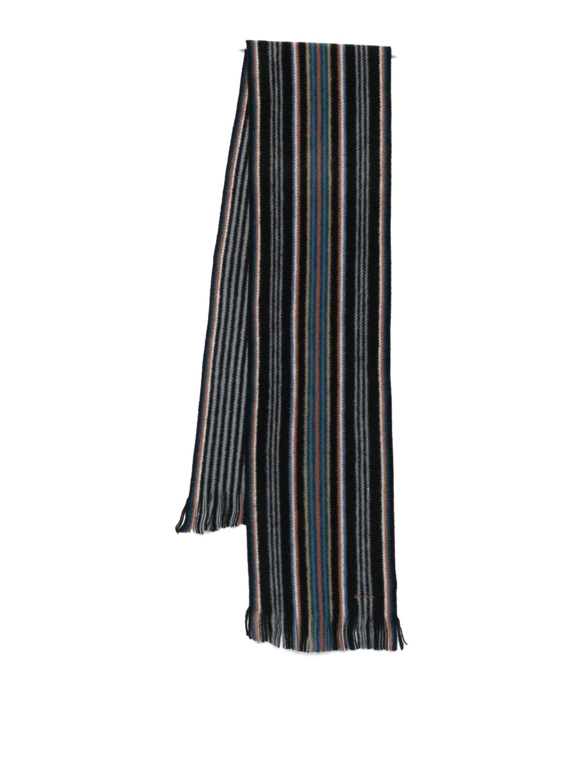 PAUL SMITH: scarves - Black Scarf In Wool With Stripes
