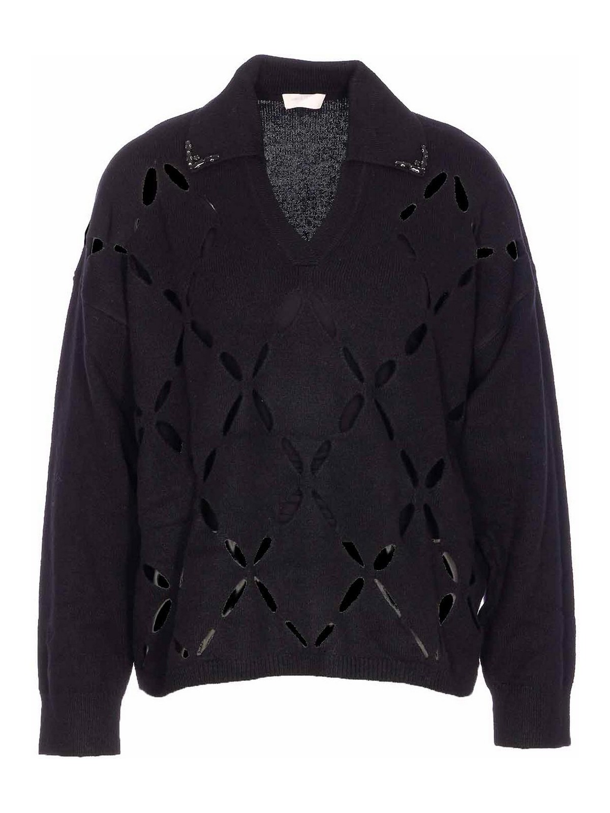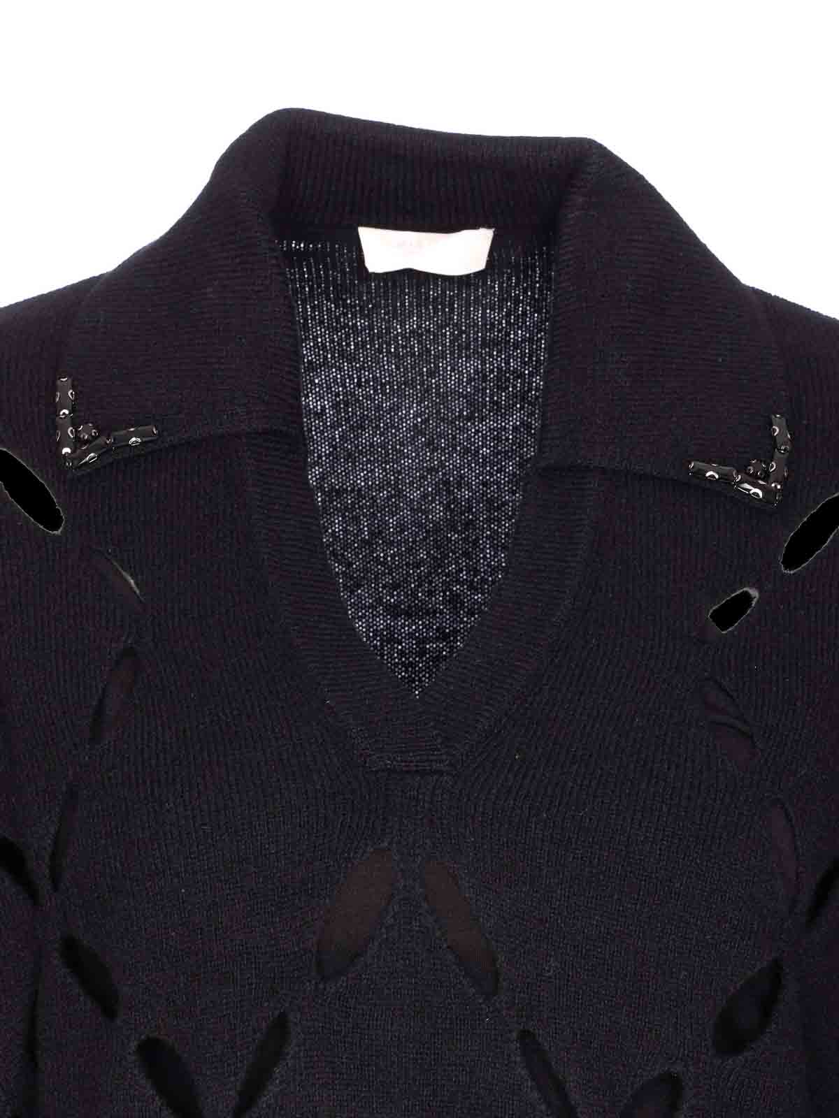 Liu jo black sweater tank top v-neck regular collar cut out long sleeves