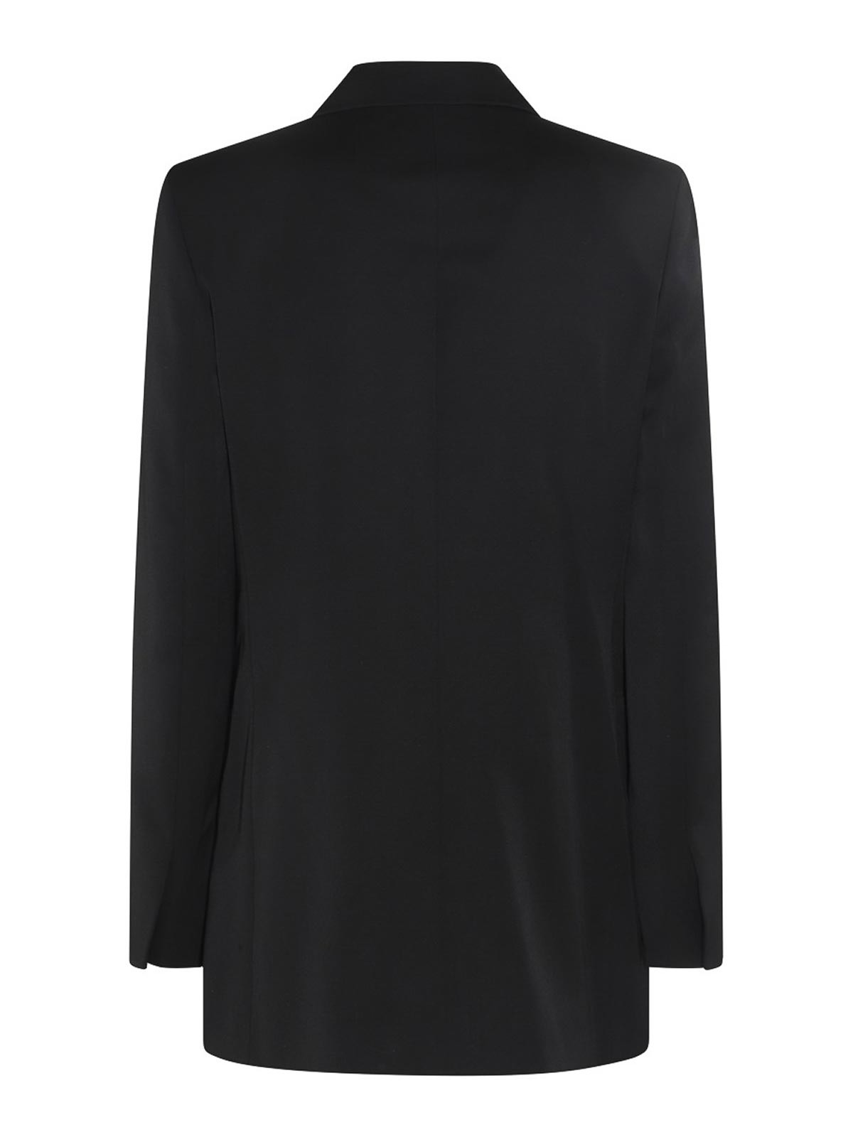 Black blazer from lanvin featuring long sleeves double breasted oversize fit palladium tone buttons and