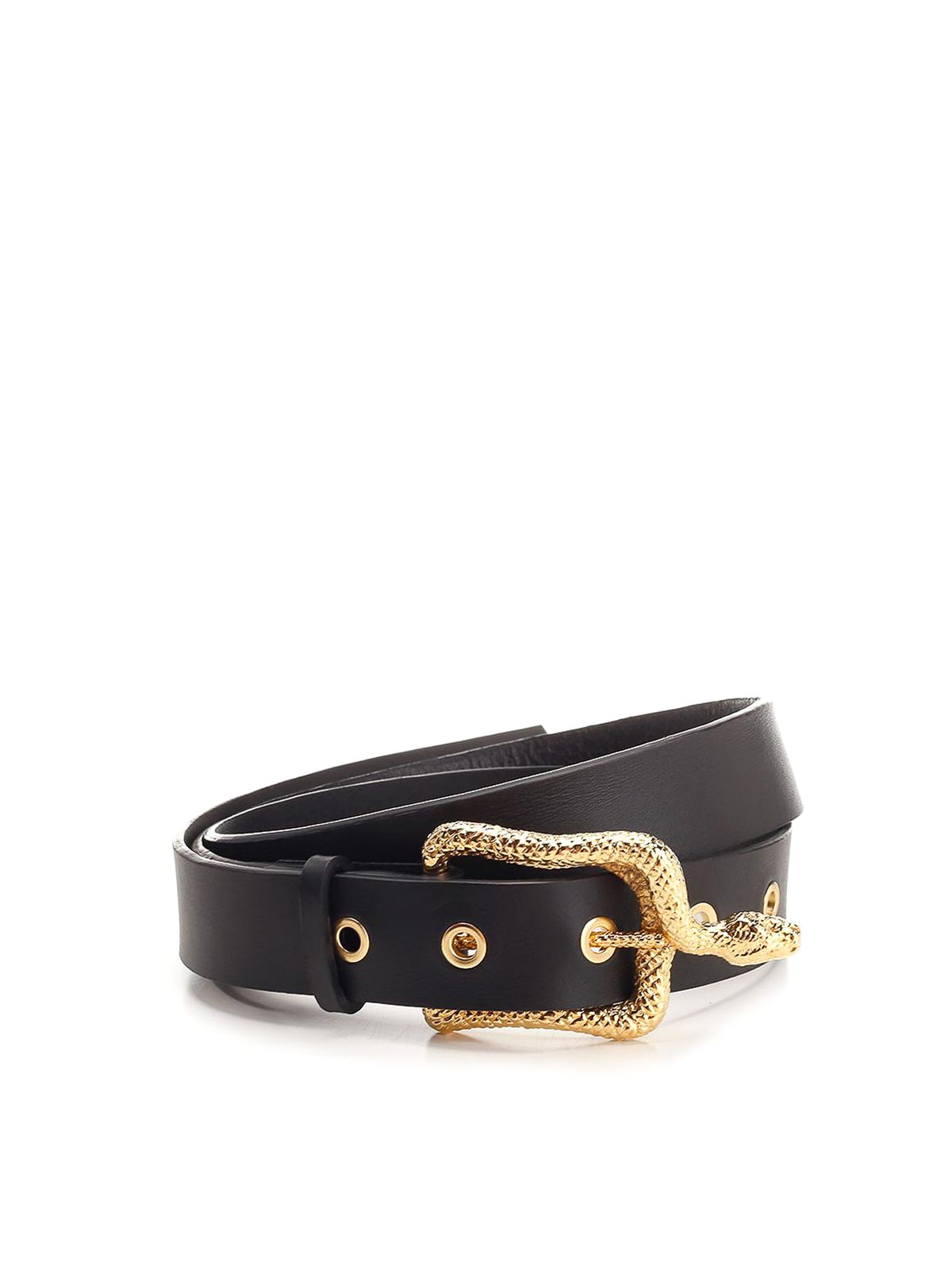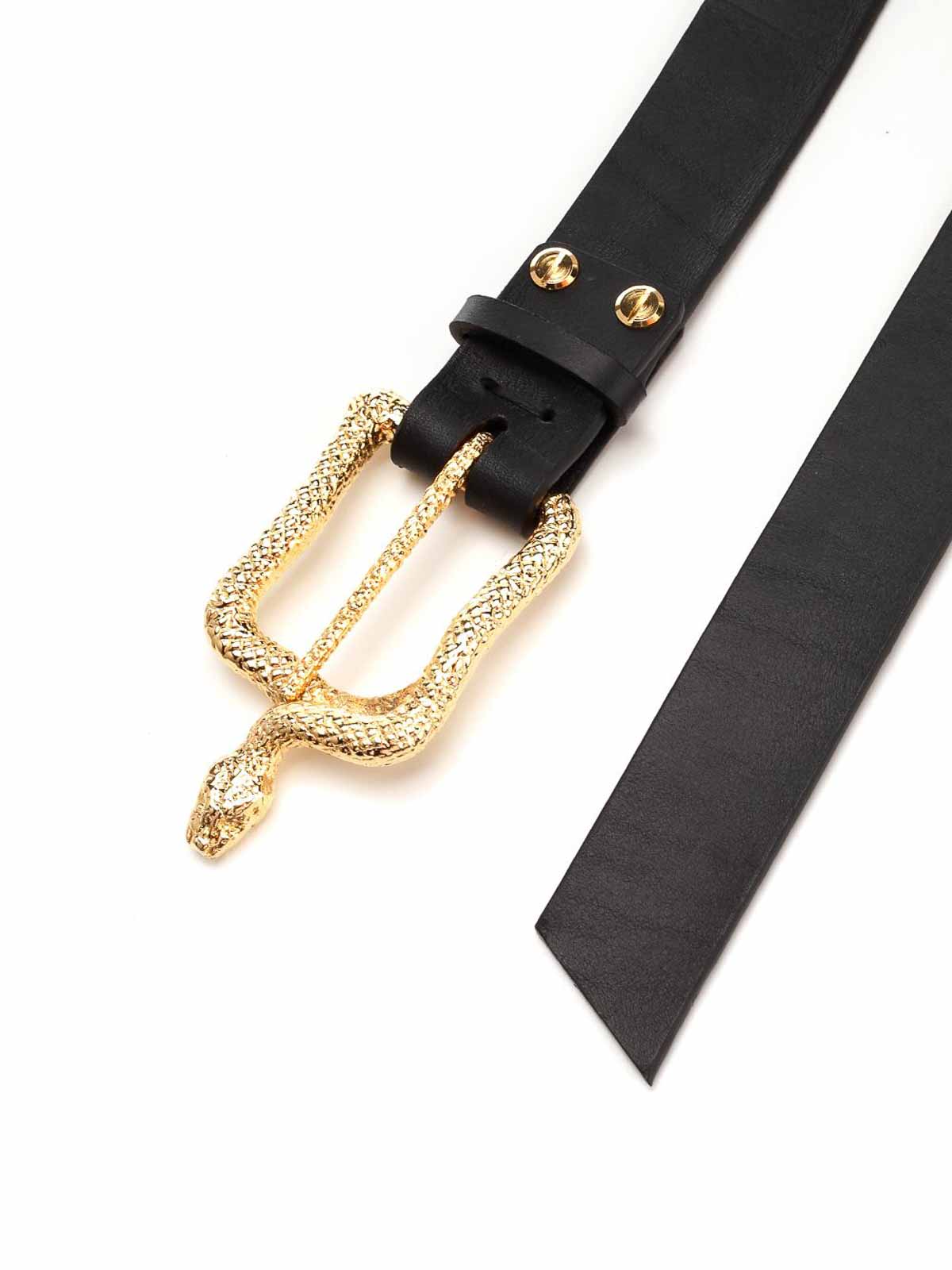 marasso belt in recycled black leather, buckle with golden snake from laboratorio riciclo pelle exclusively for al duca d'aosta.