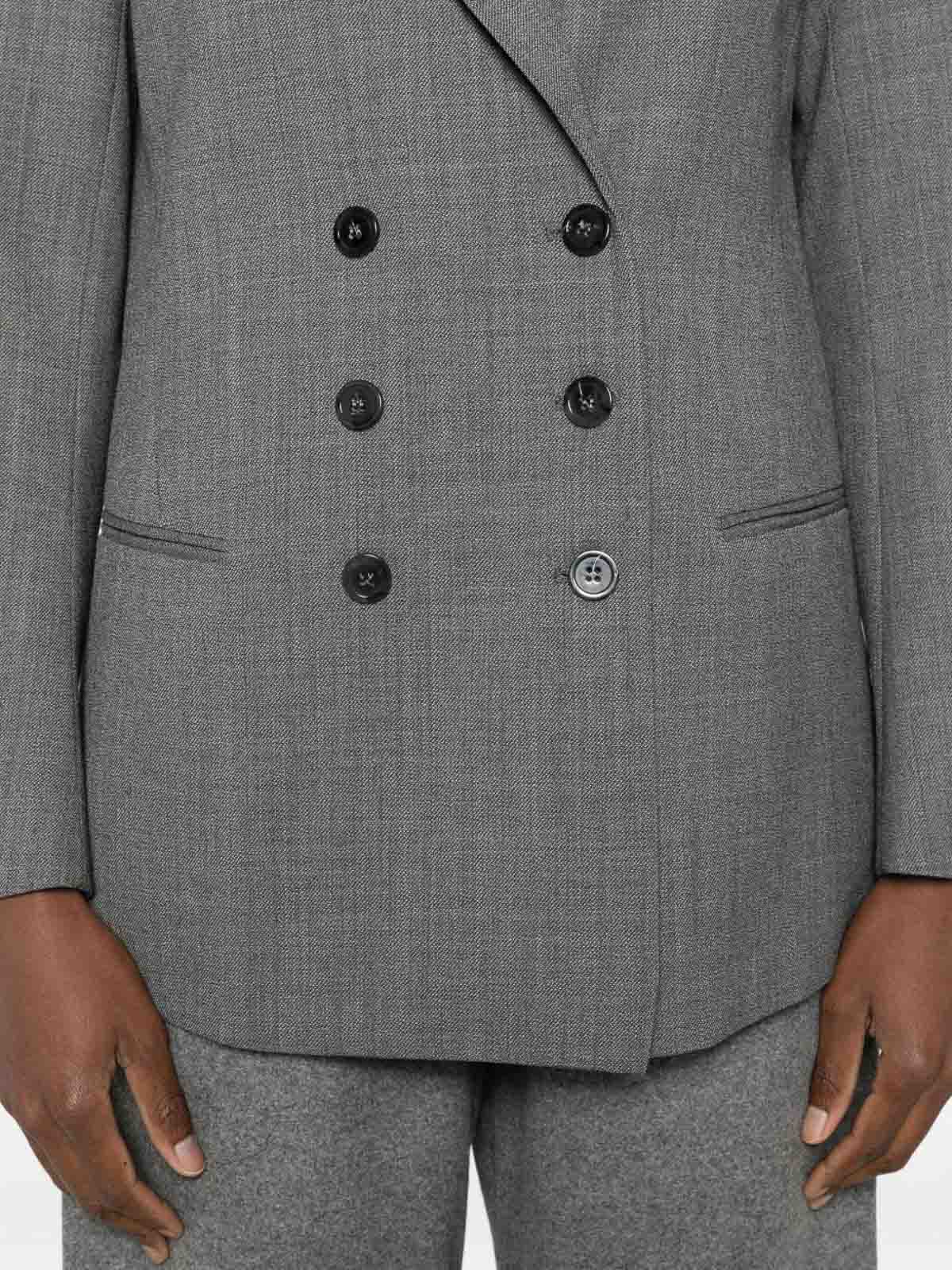 Grey virgin wool front button fastening notched lapels side slit pockets