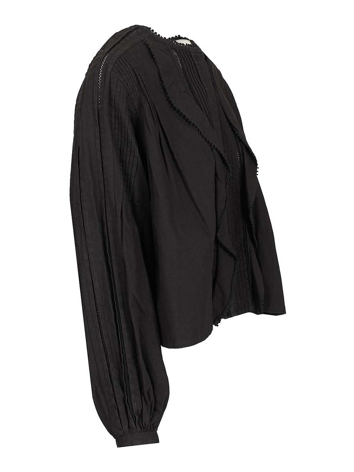Isabel marant cubraly blouse round neckline covered button with round covered buttons long sleeves with narrow cuffs ruffles mesh detailing crochet finish and loose fit