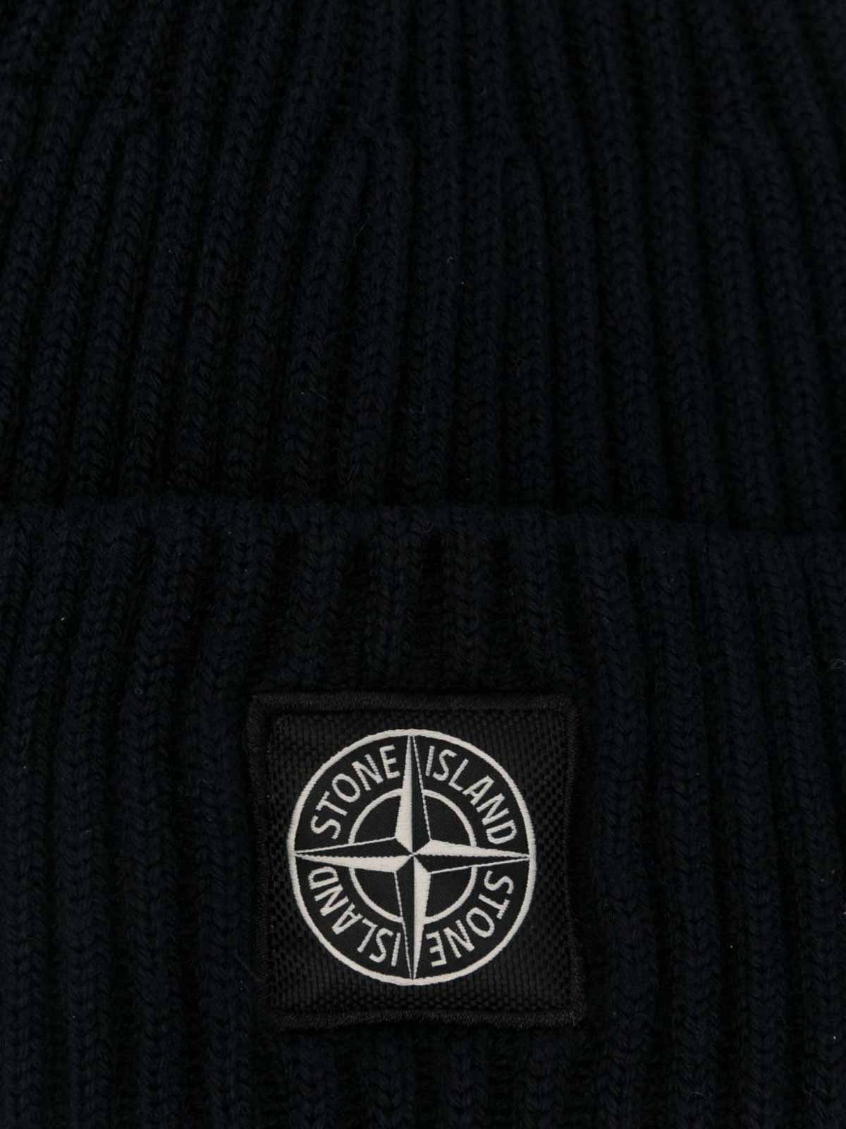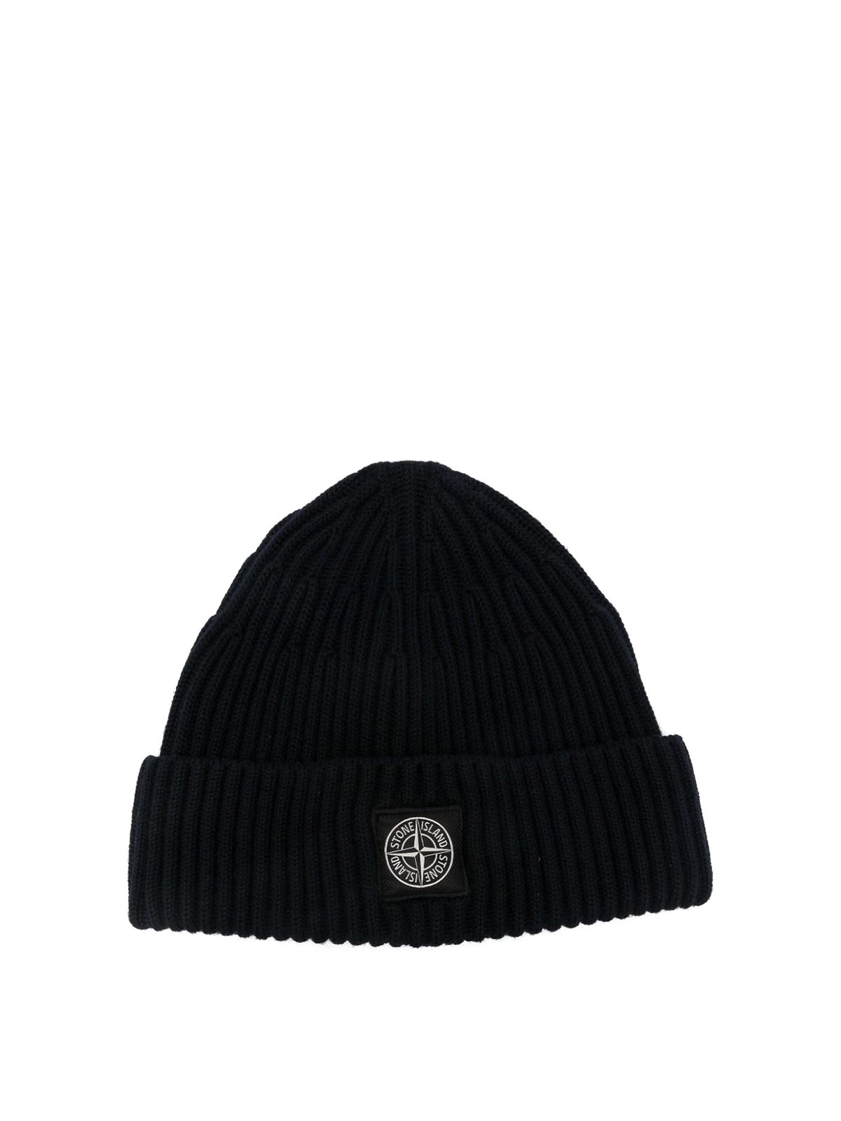 STONE ISLAND: beanies - Blue Navy Beanie In Wool With Logo