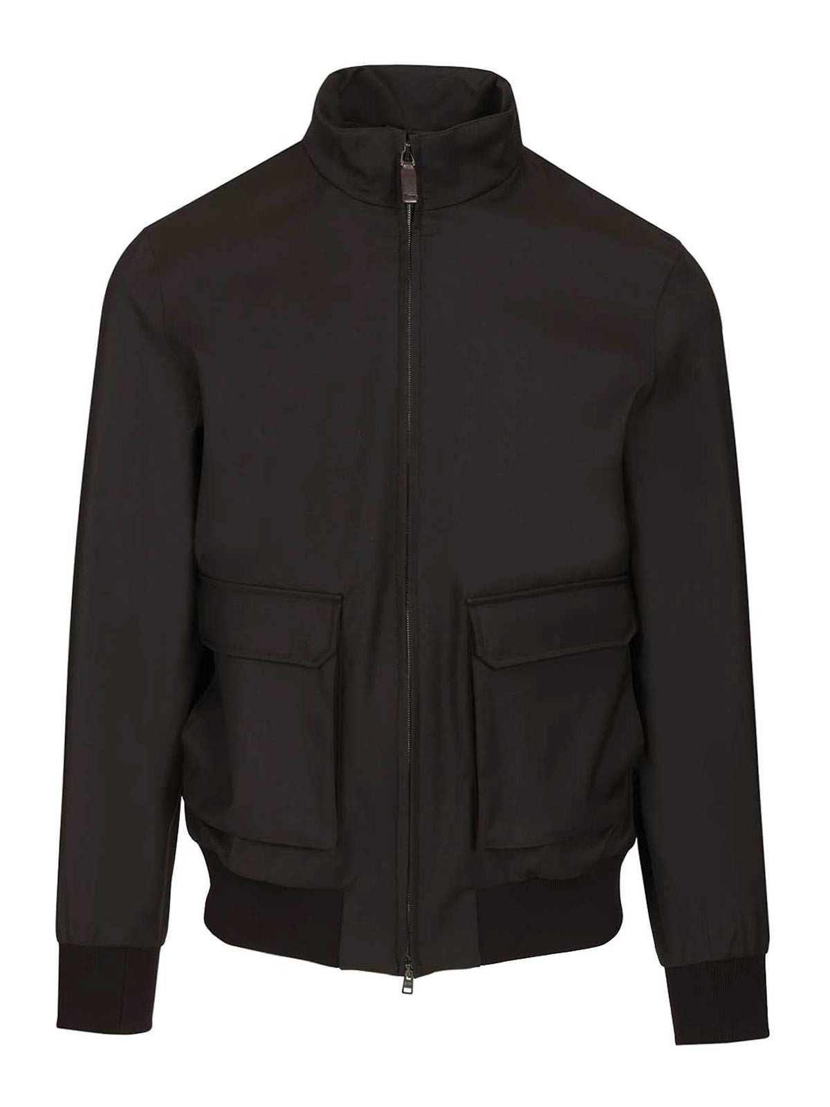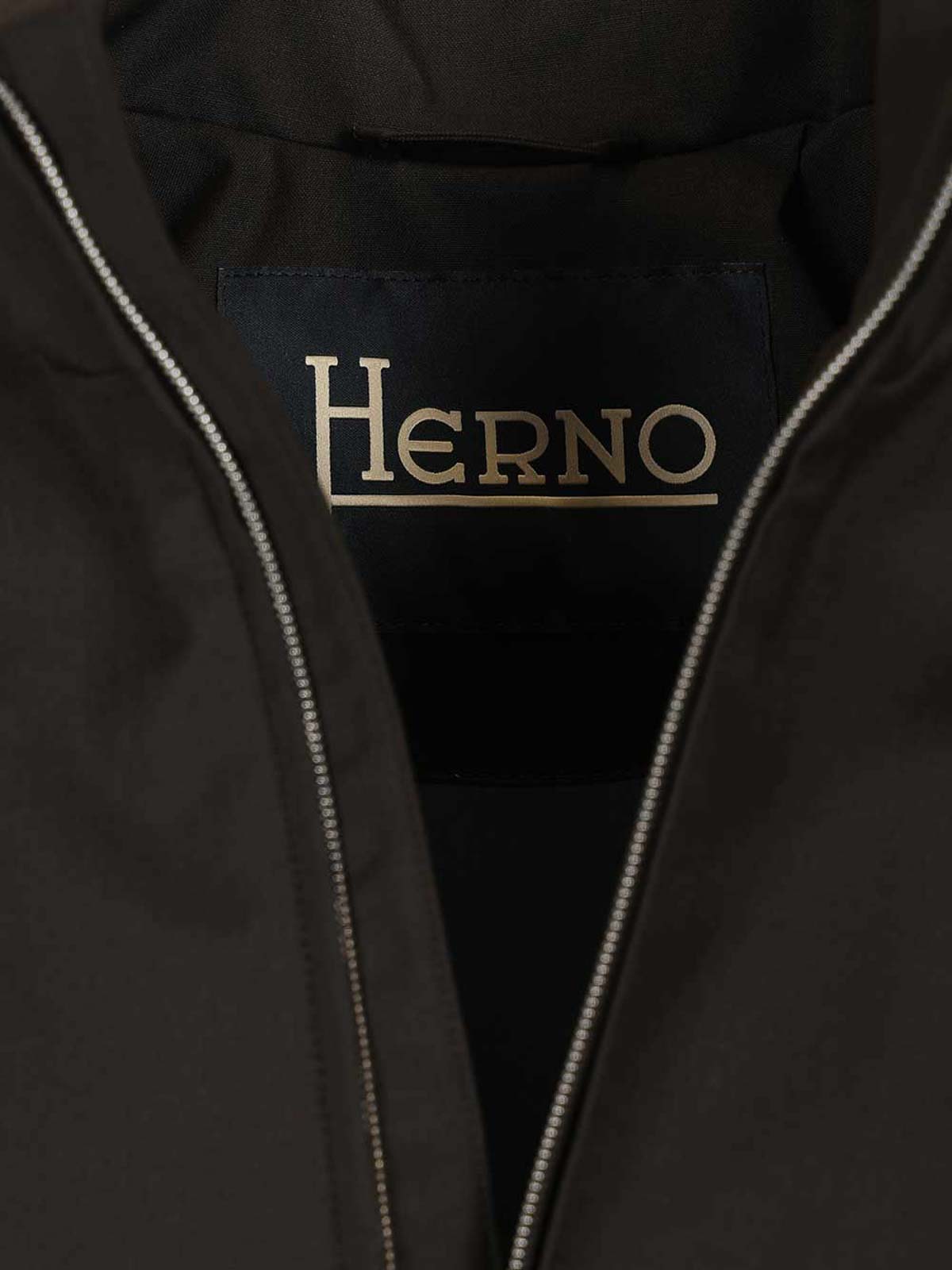 Pure bomber jacket by herno high neck long sleeves flap pockets herno logo on the back double, slider zip and