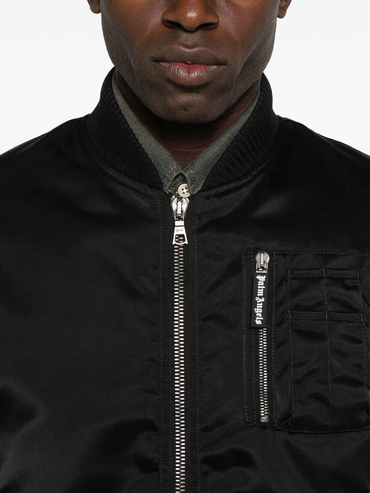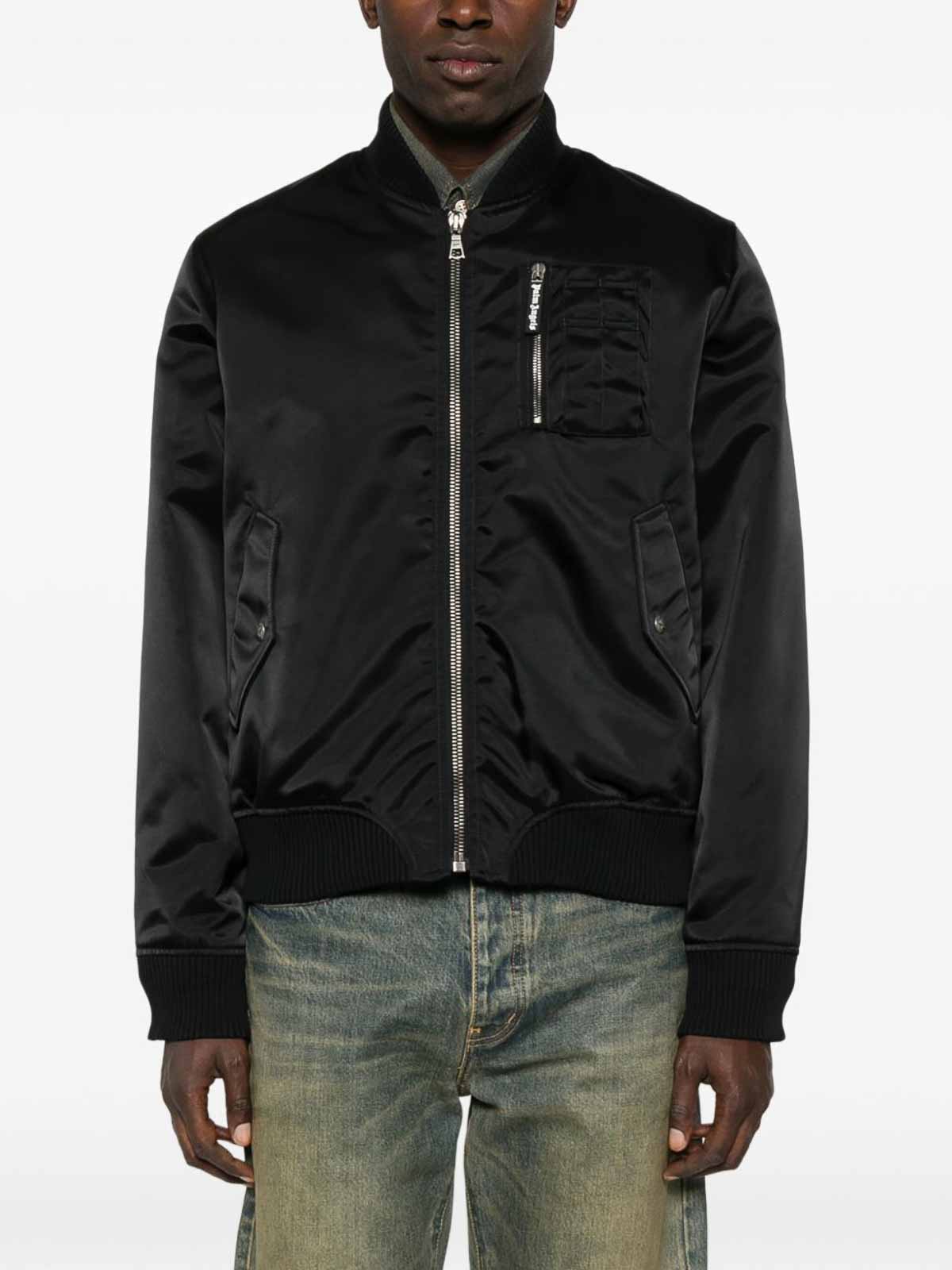 Bomber with logo zip chest zip pocket two side pockets with snap button low ribbed collar
