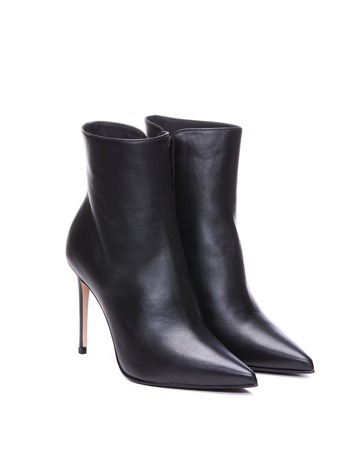 Le silla black leather booties pointed toe zip closure stiletto heel leather upper leather