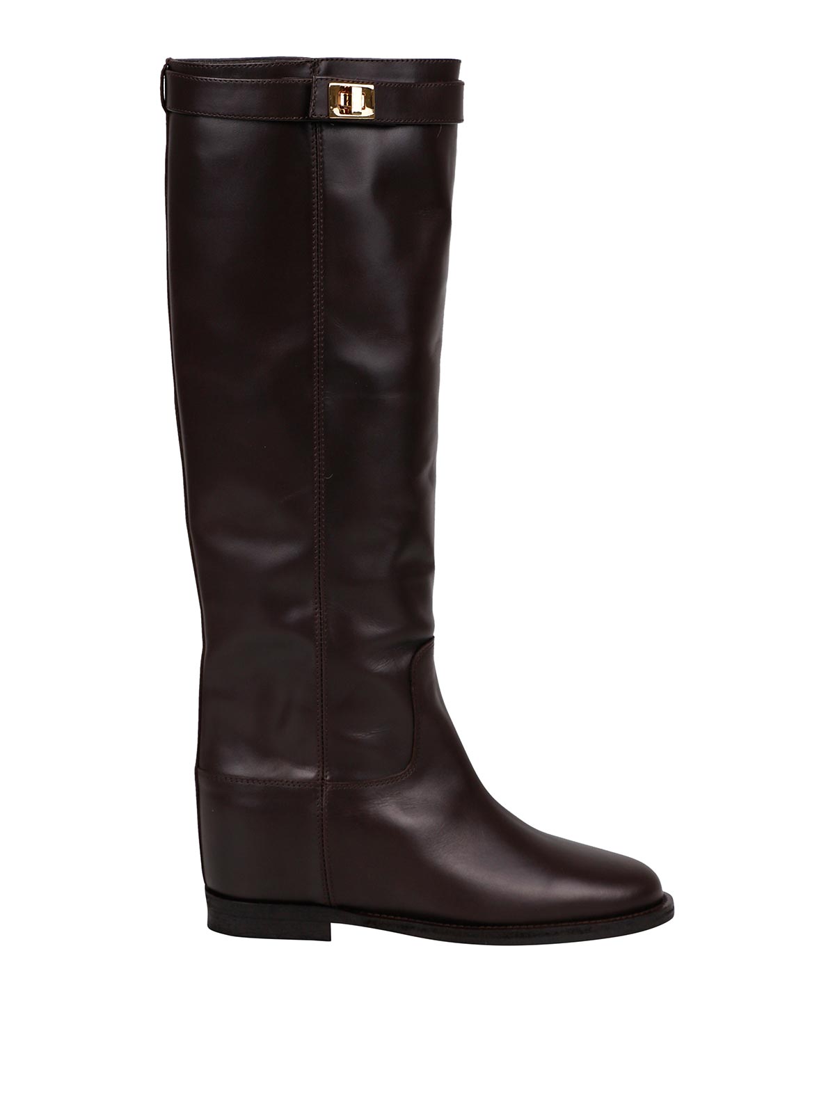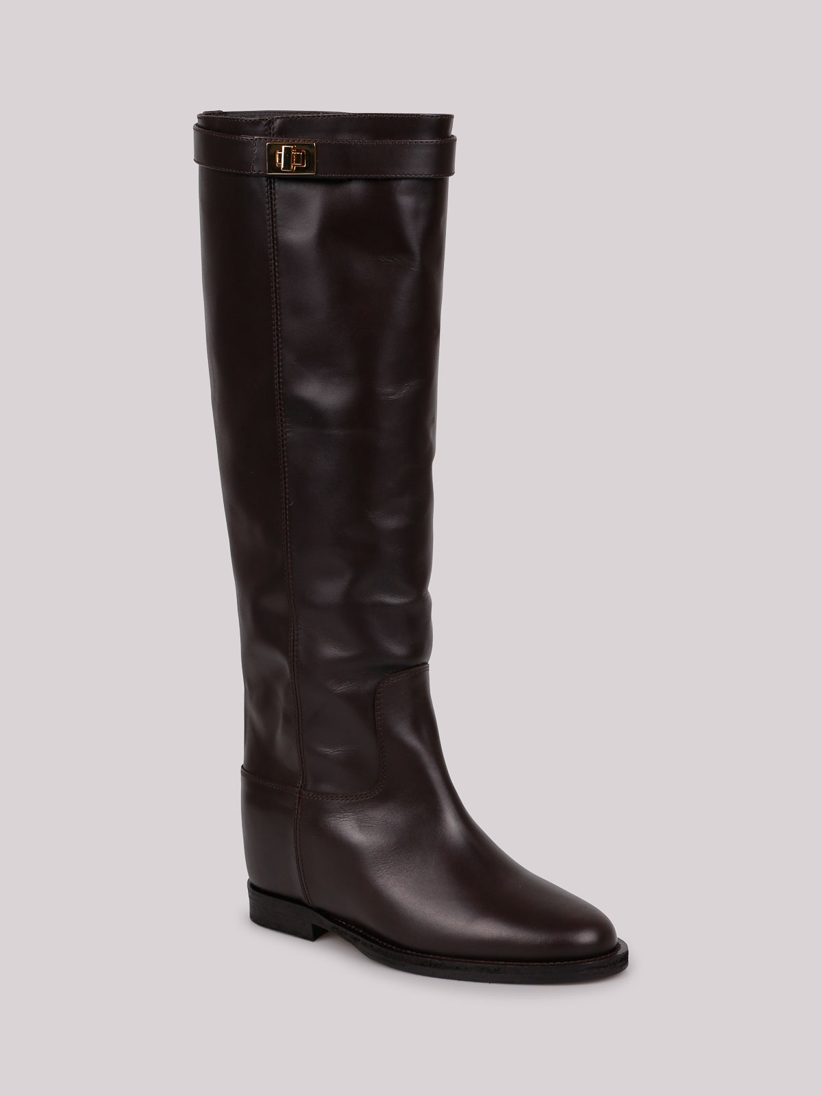 Boots with a Via Roma upper walker, round toe, tone-on-tone stitching, wide and low
