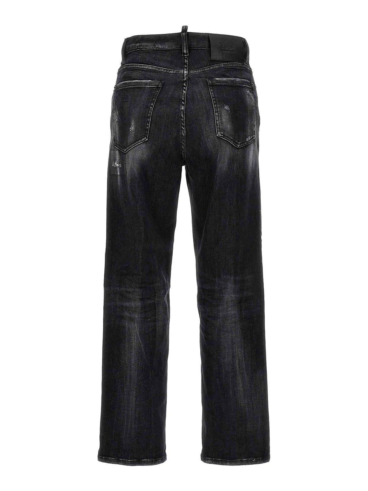 boston' stretch denim jeans with used and destroyed effect button five pockets logo tag