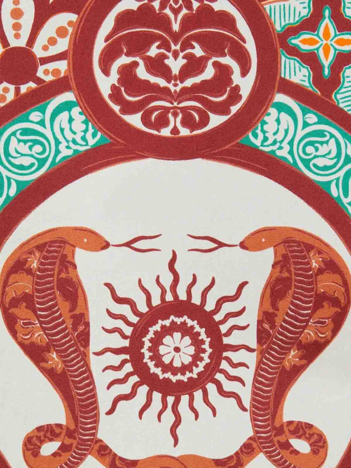 Green, short sleeves, shirt collar, button closure, printed design, snake and floral print