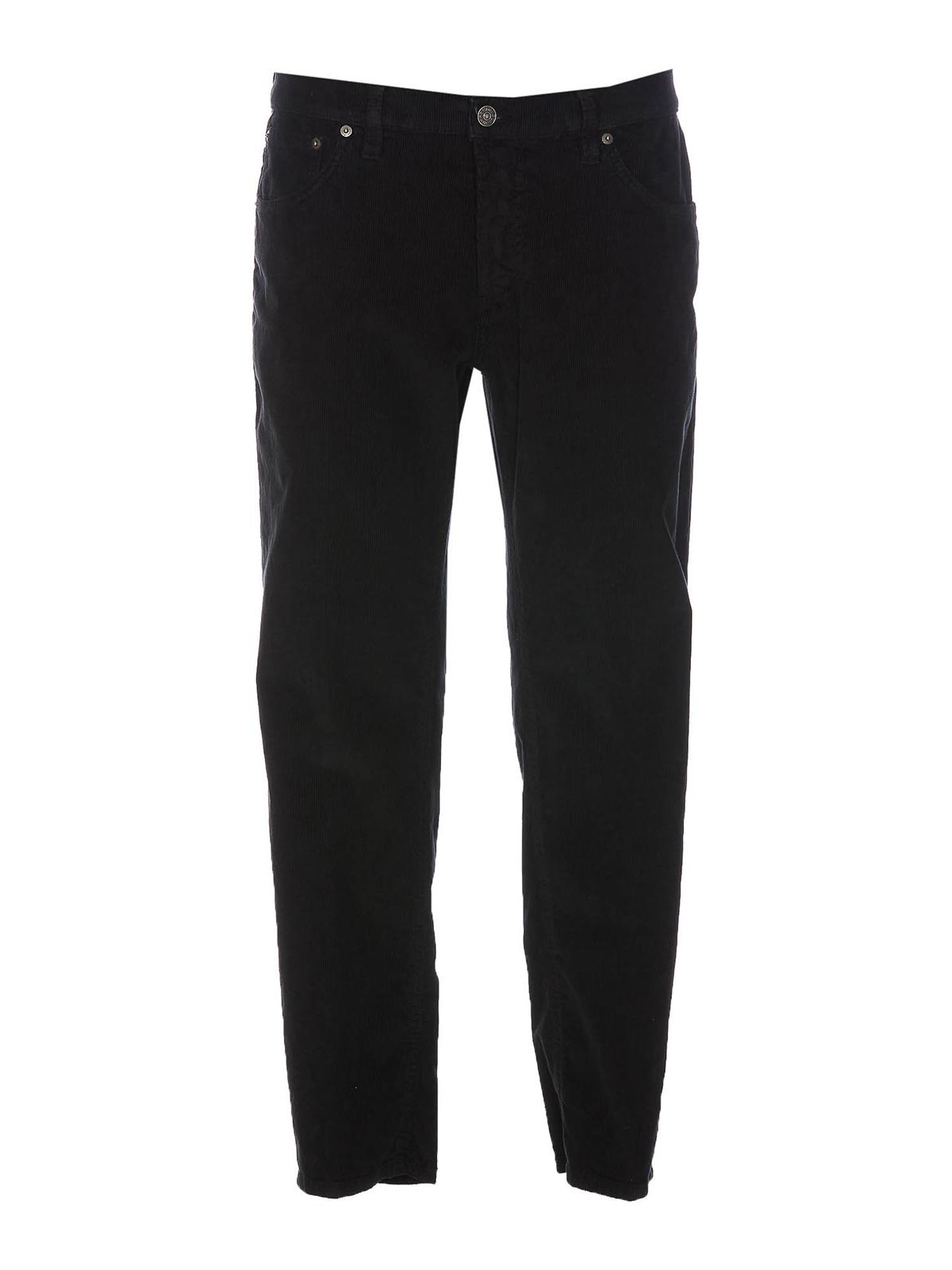 Dondup black Brighton pants with frontal buttons closure pockets velvet effect carrot fit