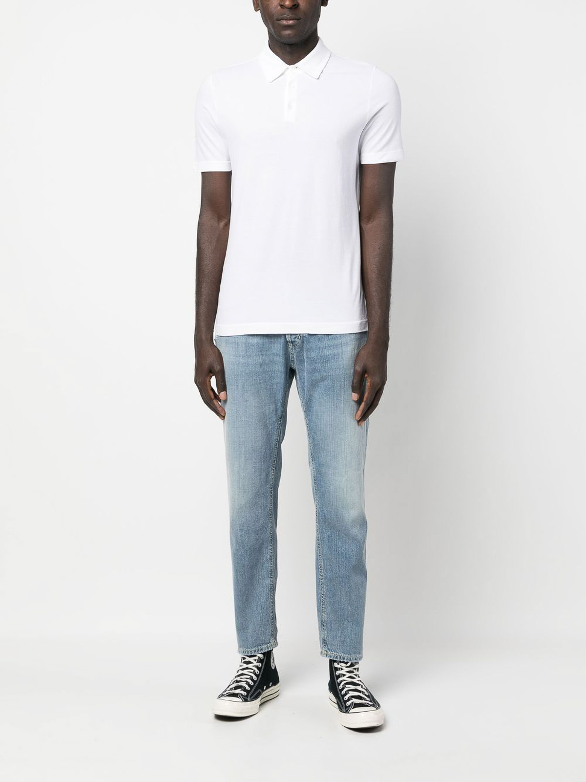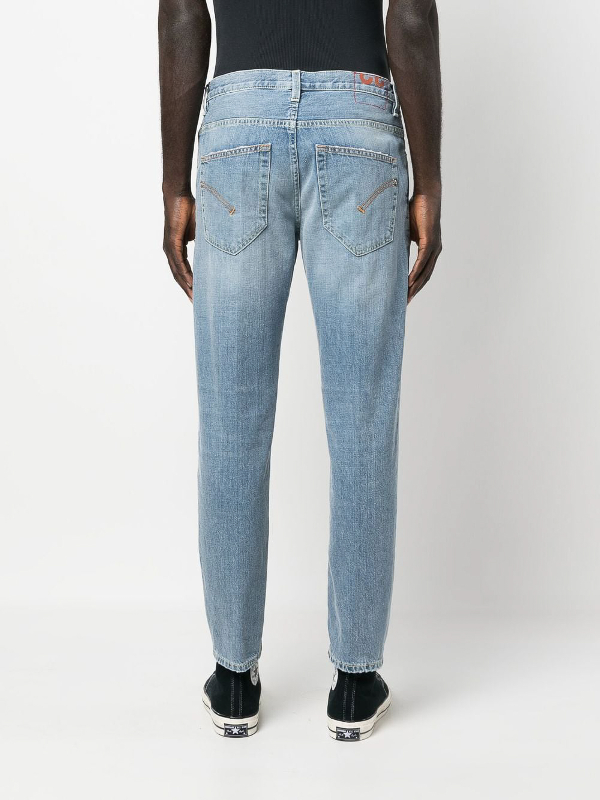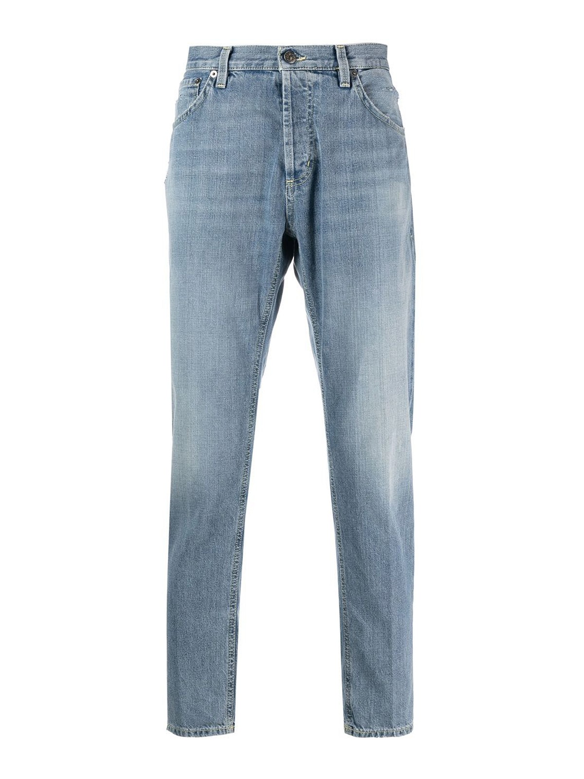 Brighton tapered jeans from dondup featuring blue, cotton, low-rise, light wash, belt loops, front button and zip fastening, tapered leg and classic five pockets.