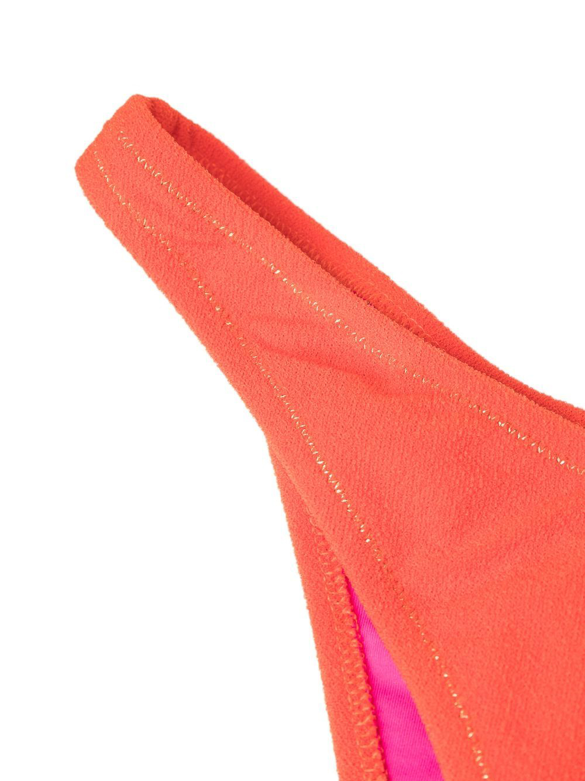 Carrot orange brigitte underwired bikini set fleece texture, contrast stitching, gold-plated hardware, underwire cup, adjustable shoulder straps, rear hook fastening, slip-on style and no fastening.