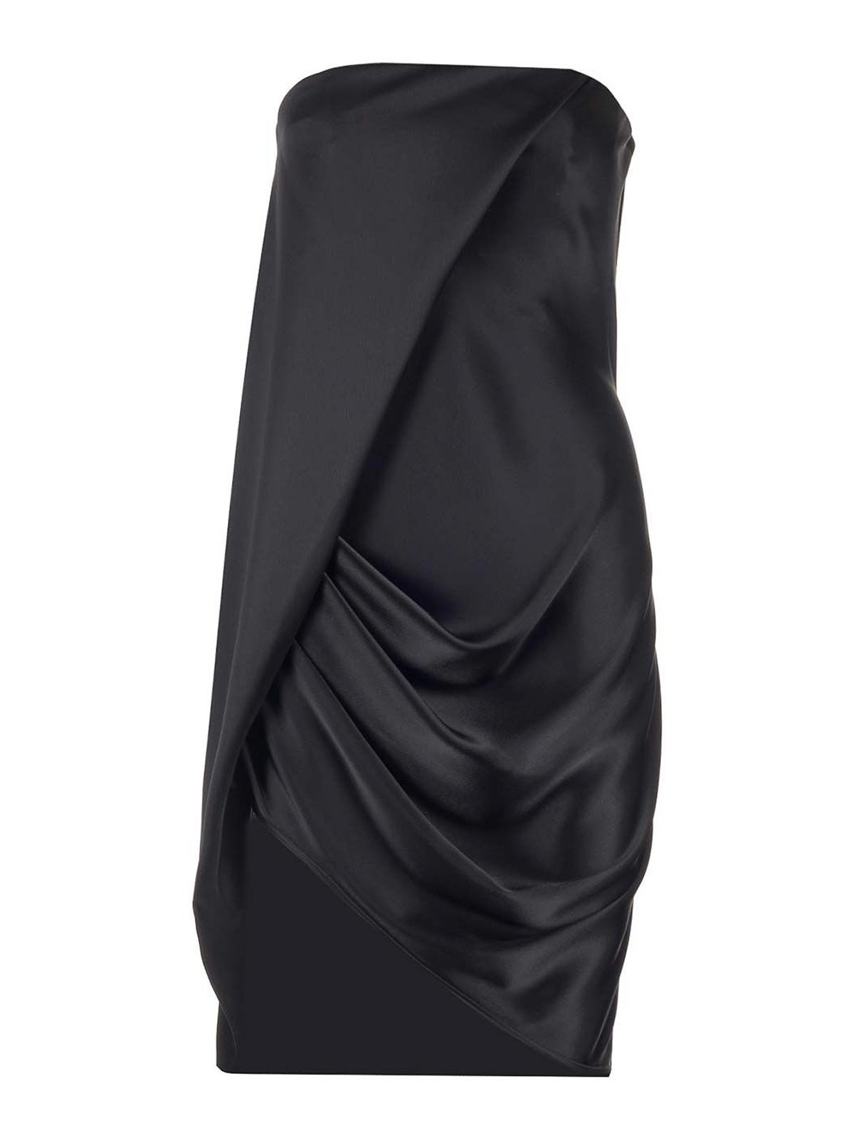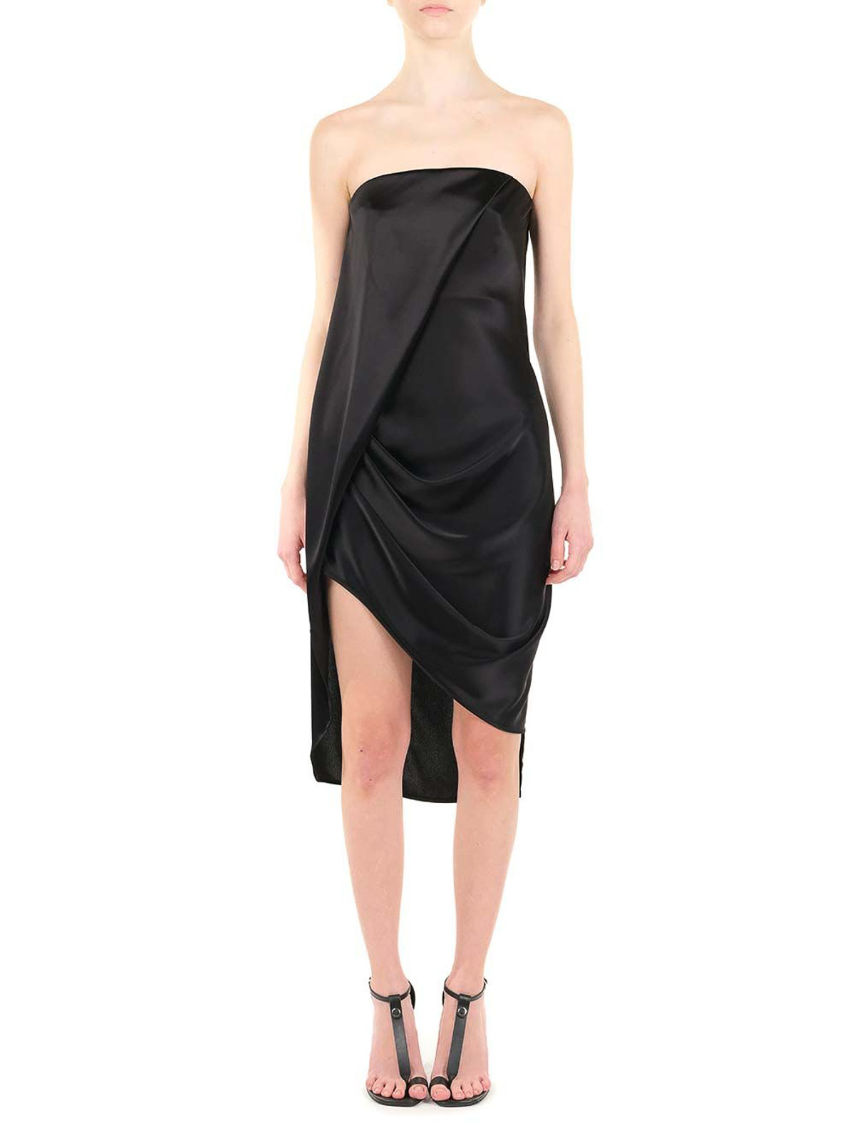 Bustier dress from loewe in black crepe satin with an asymmetric drape and a cut-out cowl back