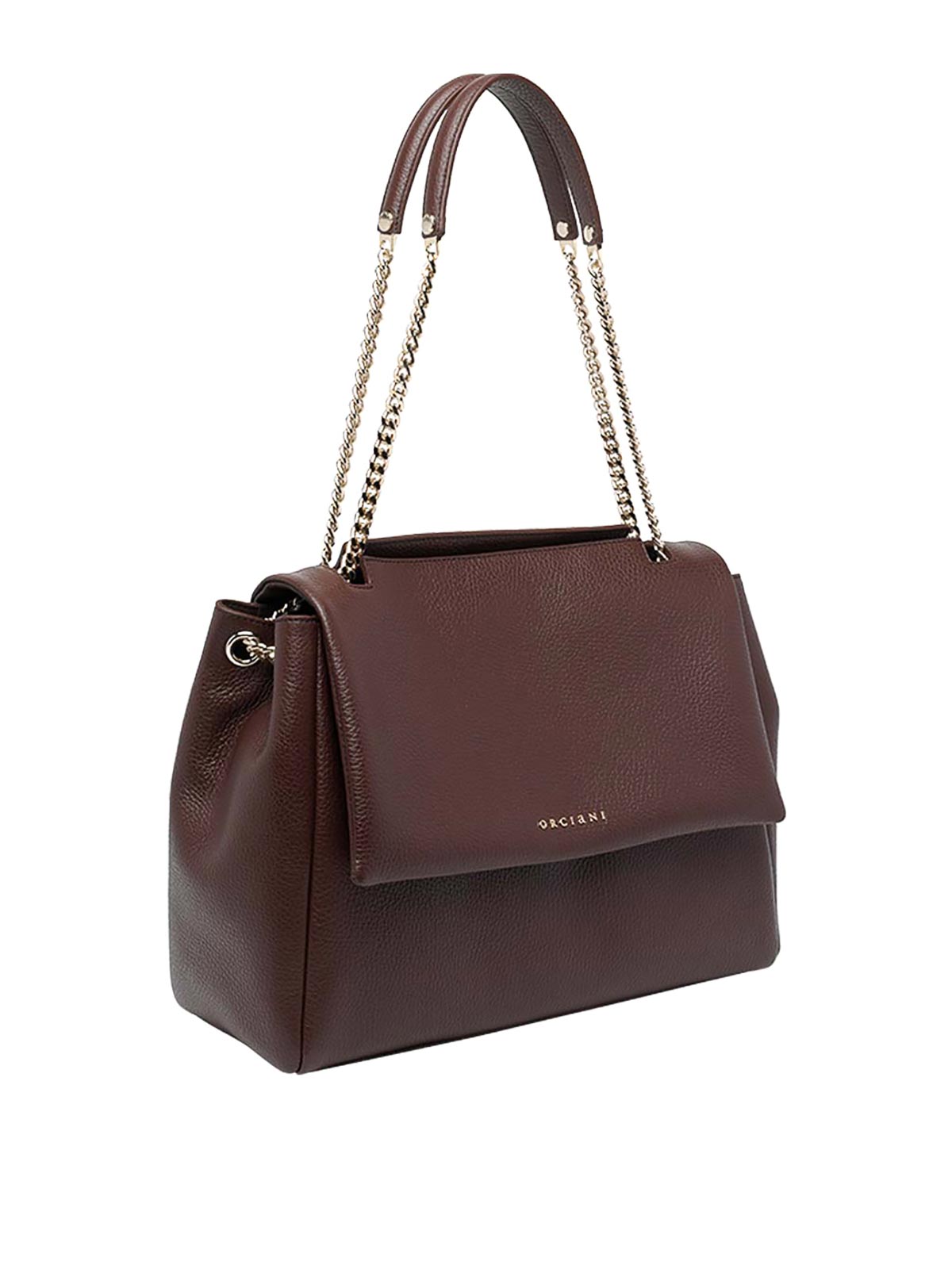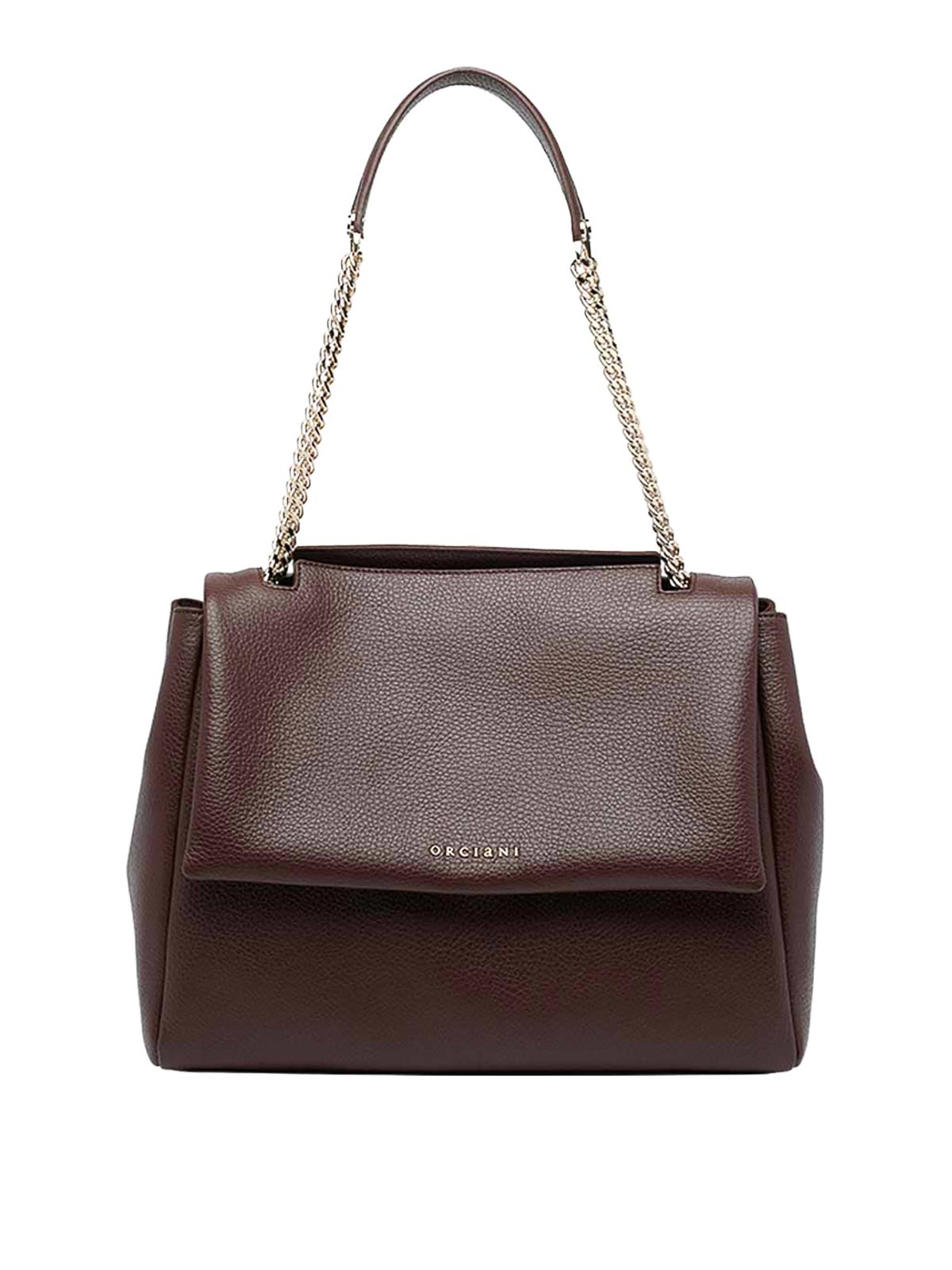 Orciani caff medium sveva sense shoulder bag magnetic open pockets sliding chain straps frontal logo