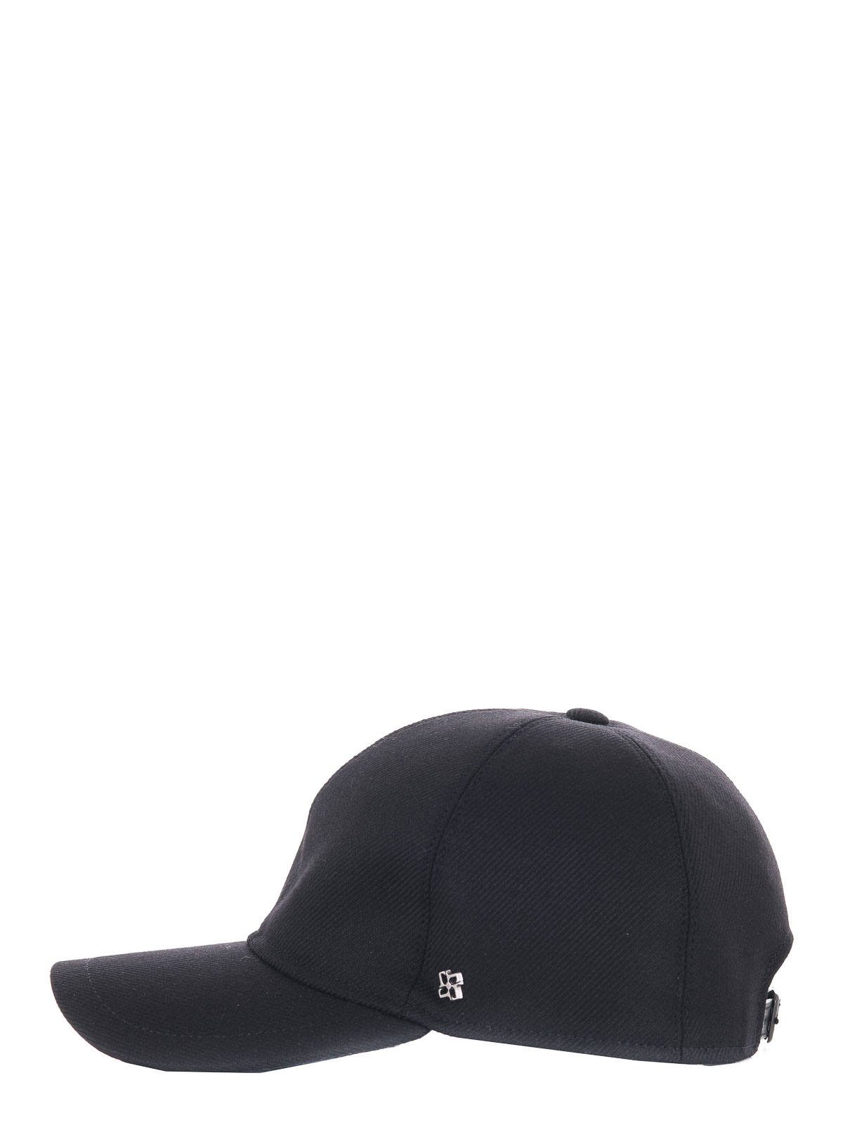 Black wool twill tagliatore cap. stiff visor. adjustable leather strap on the back. lined.