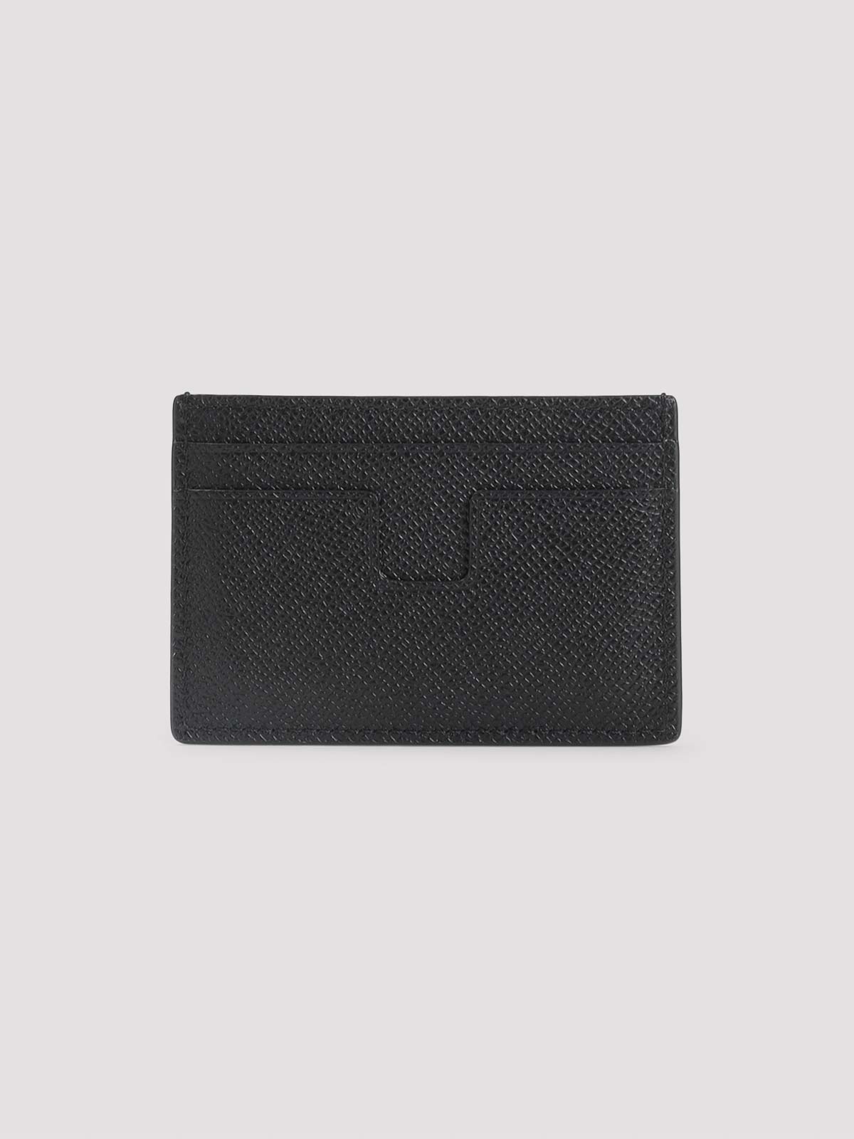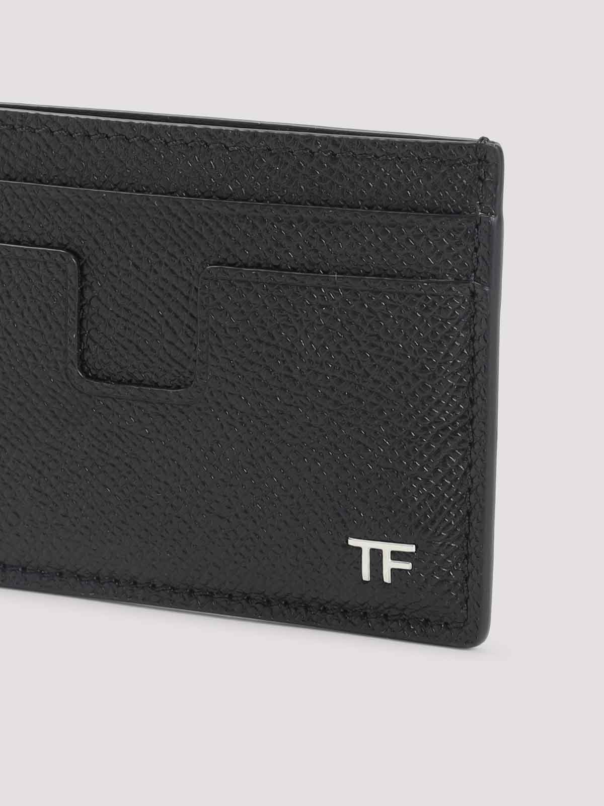 Tom ford black calf leather cardholder. pure black calf leather cardholder with two card slots, silver-tone logo on the front, inside pocket.