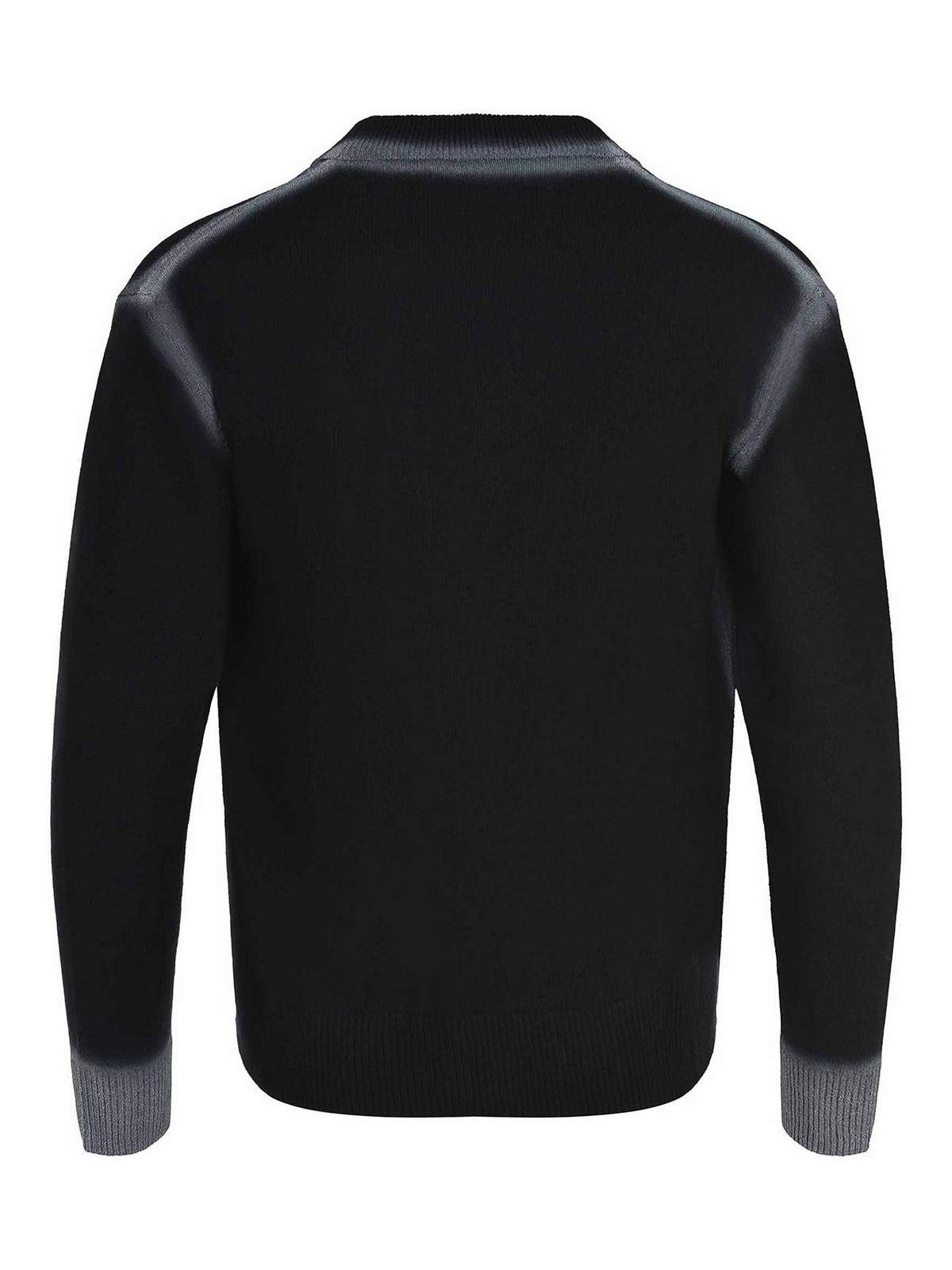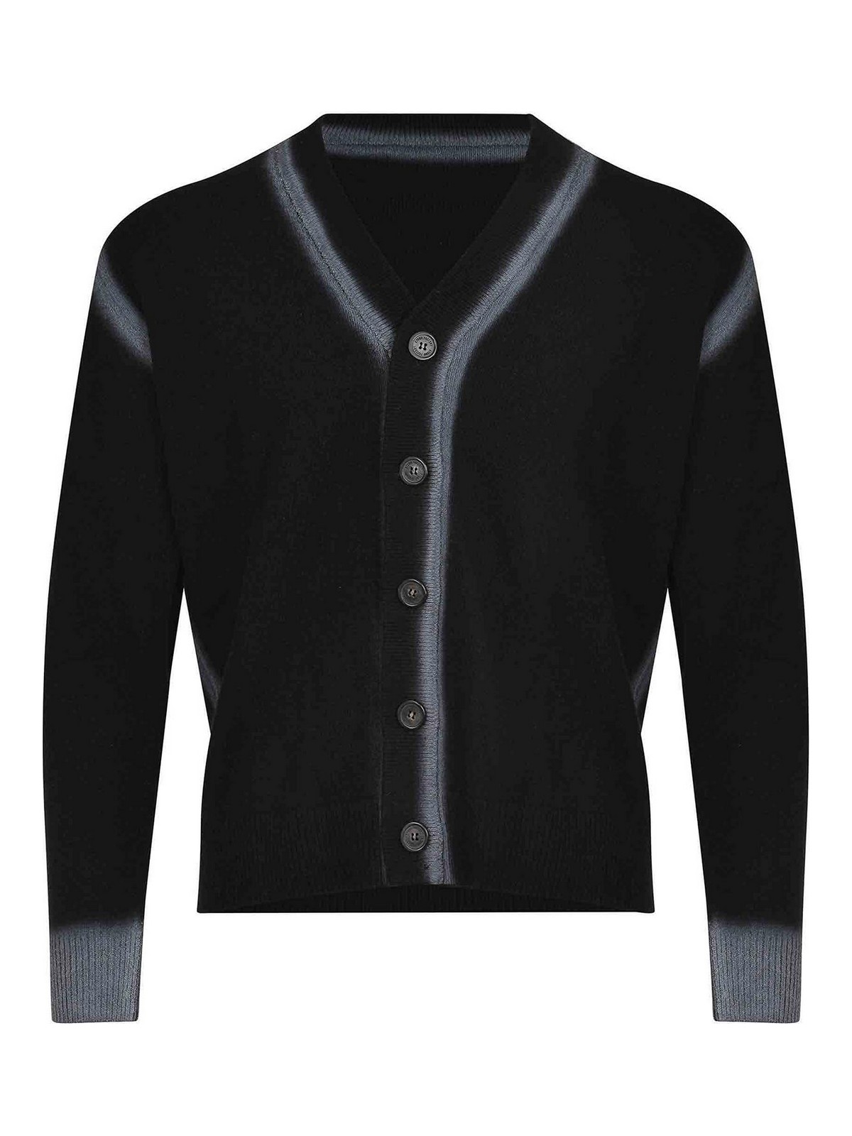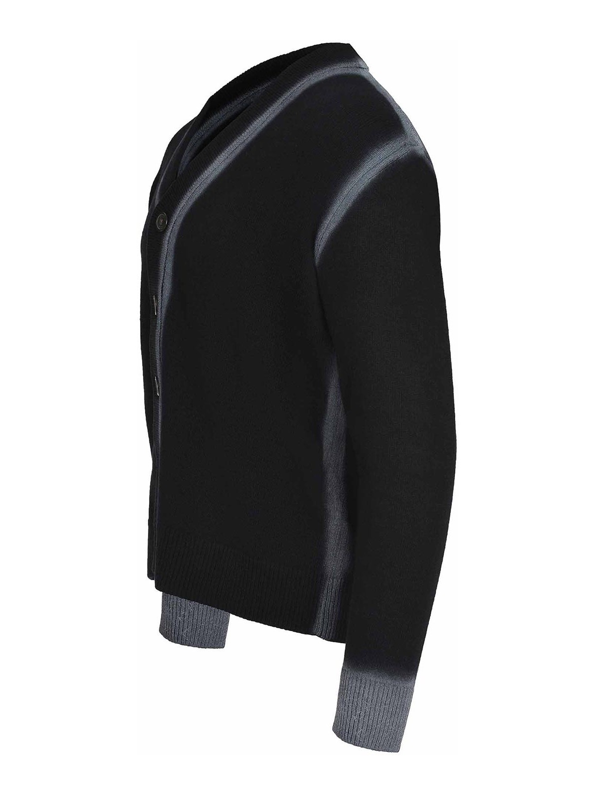Atomo factory cardigan made from a wool blend in black color, v-neck with ribbing, long sleeves, front button closure, contrast finish details with a shaded effect, ribbed cuffs and hem, 80% wool, 20% polyamide.