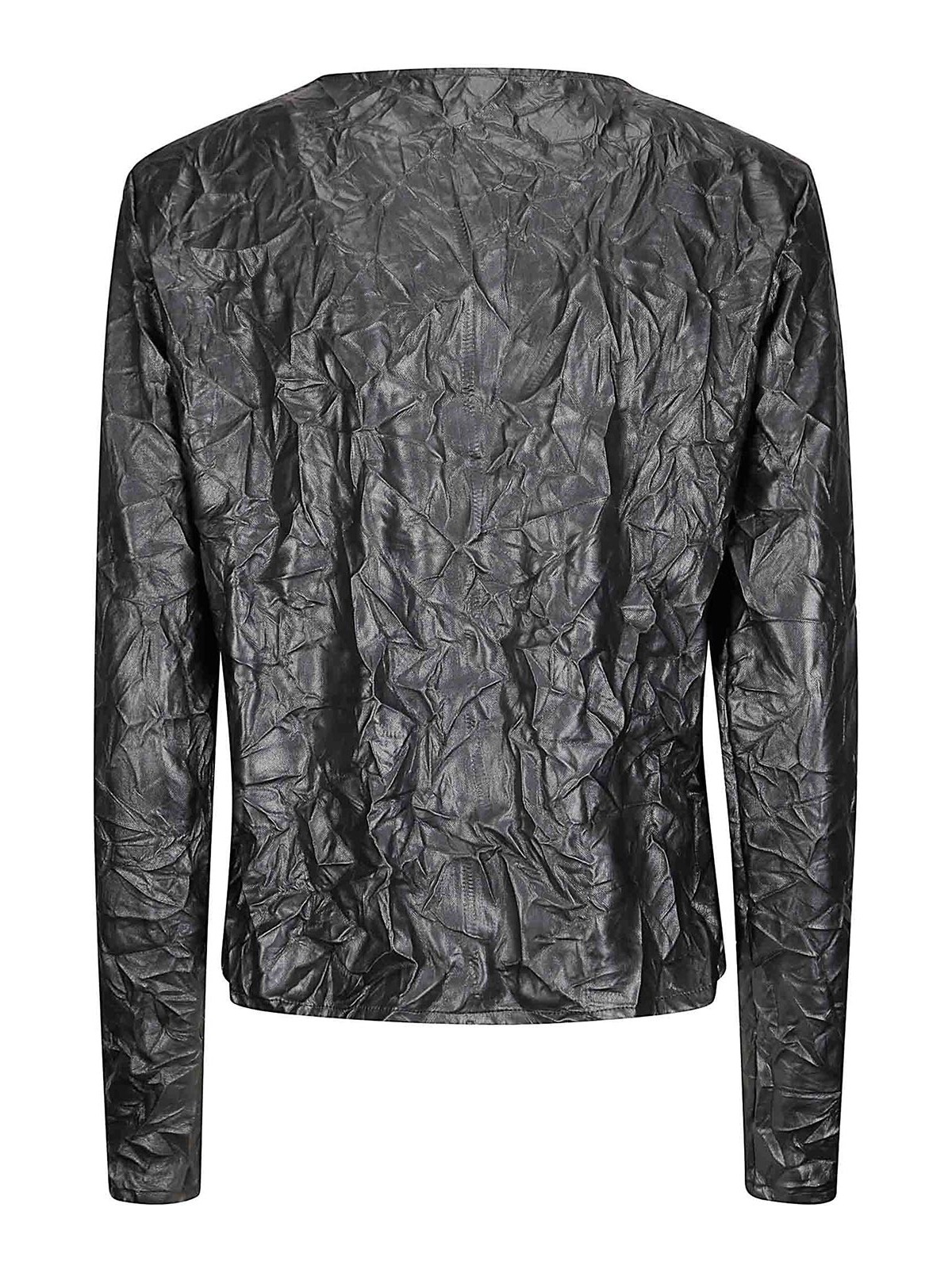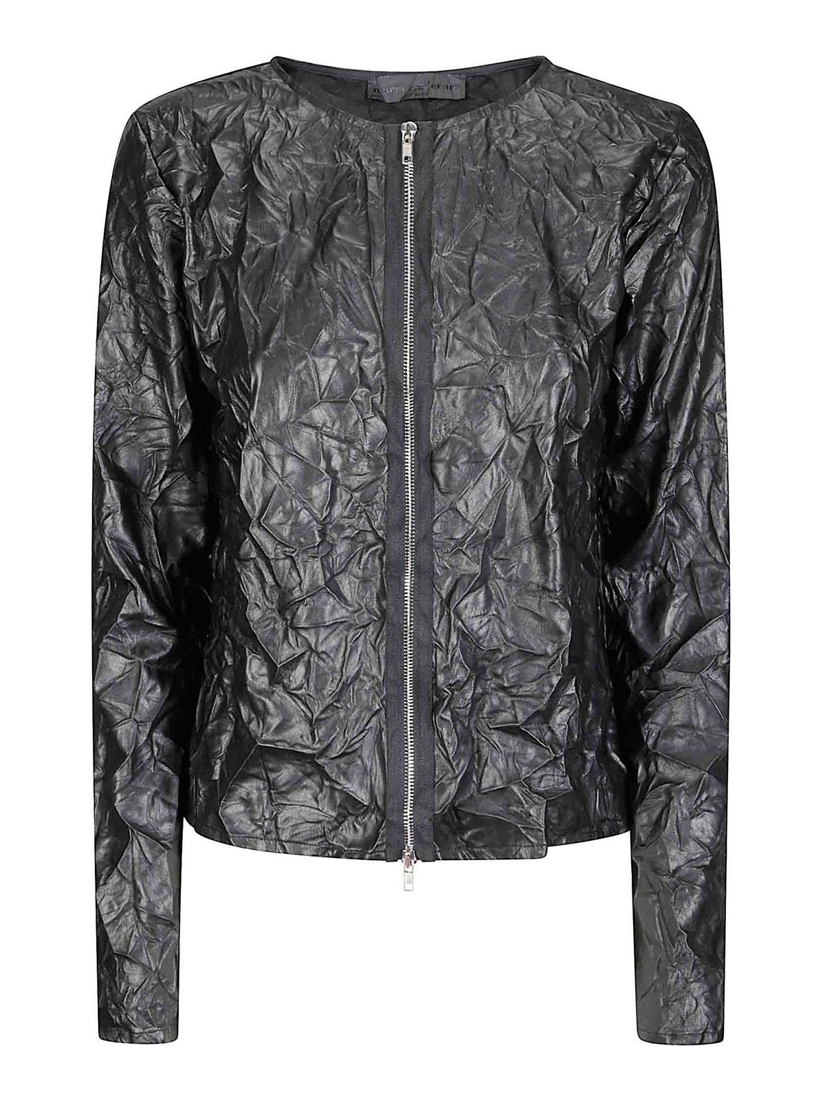 Jacket with double slider zip fastening, straight hem, wrinkled effect fabric.