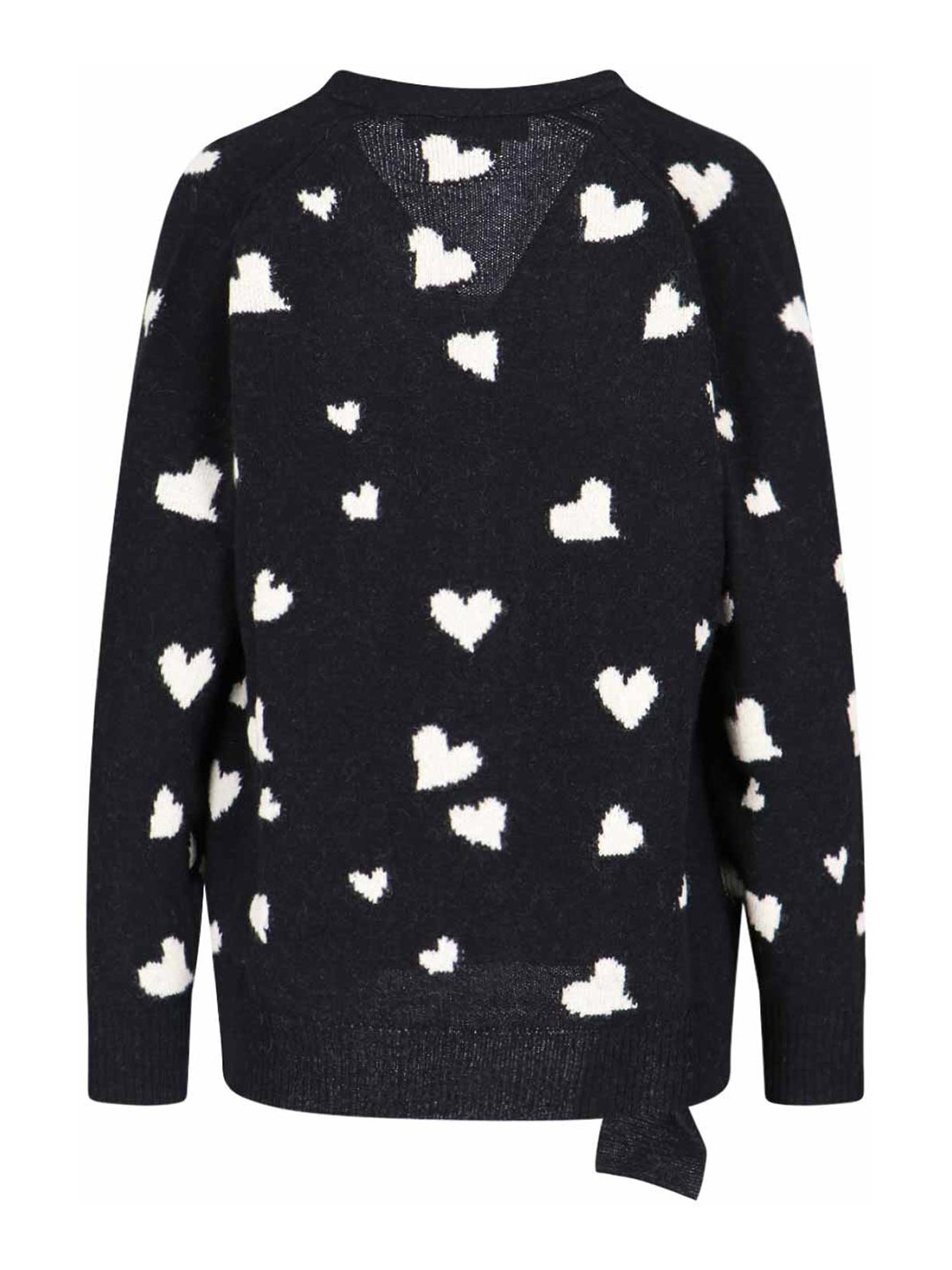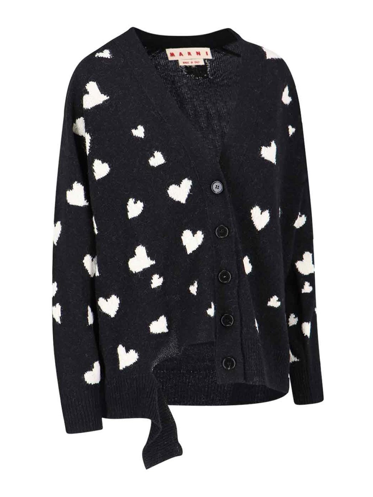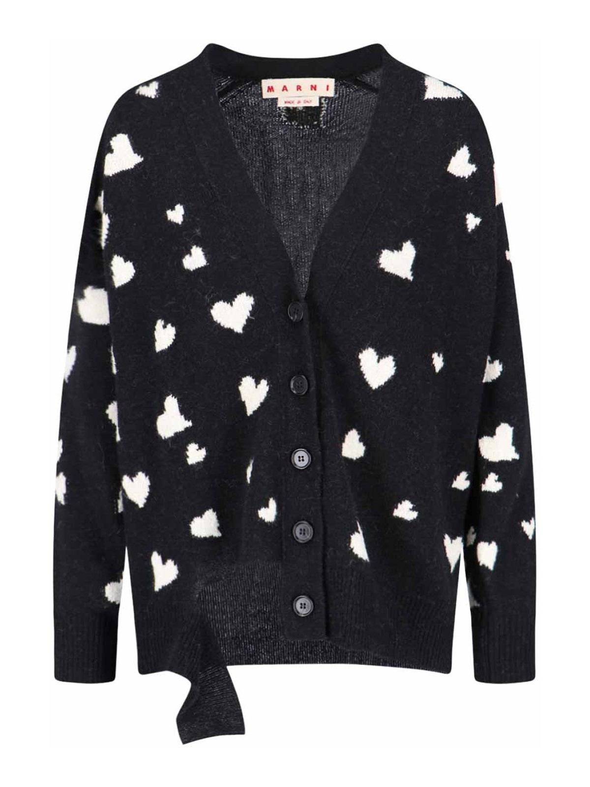 Marni and nera bunch of hearts cardigan white hearts motif all-over v-neckline destroyed buttons ribbed trims straight hem