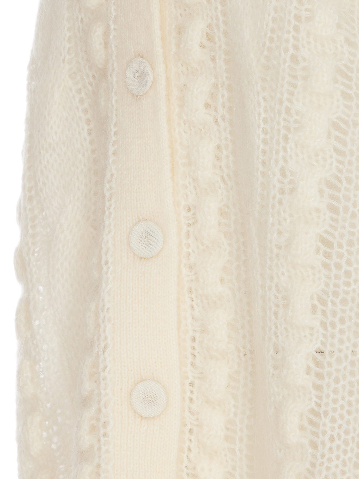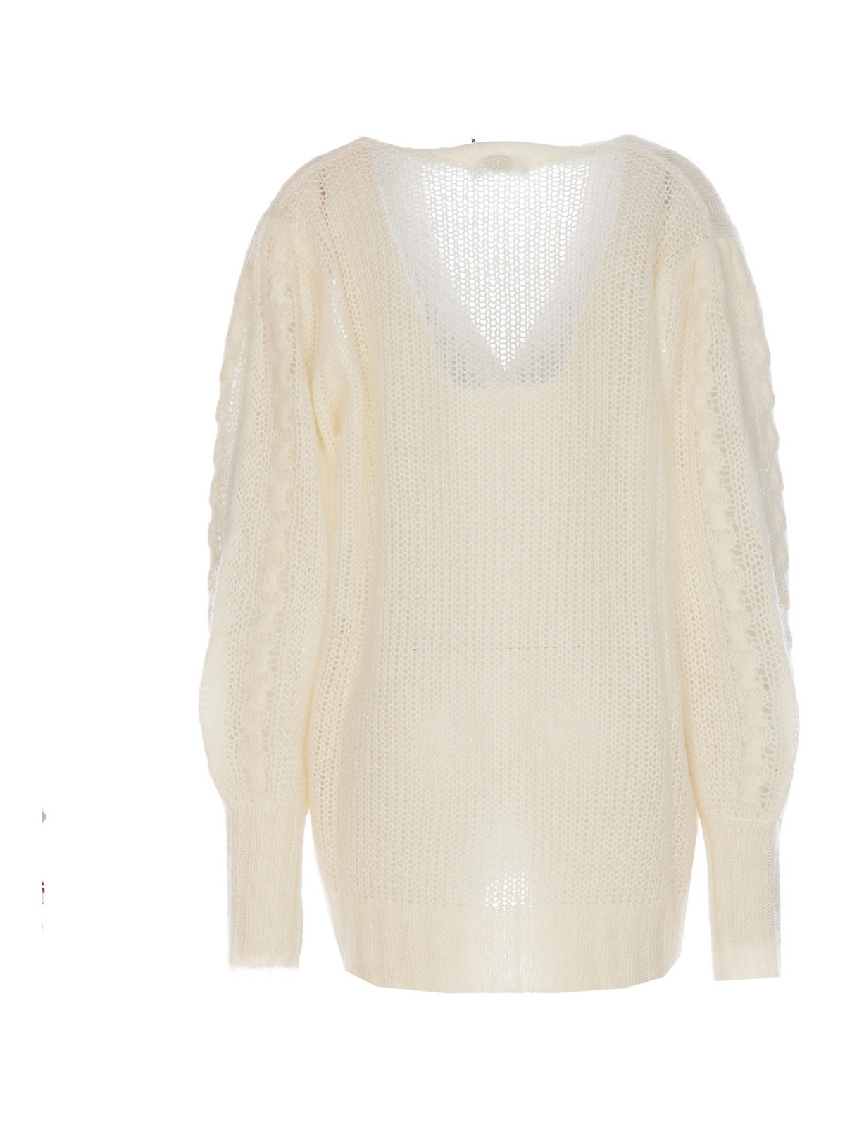 Twinset white cardigan v neck button closure tone on tone logo on the back knitted