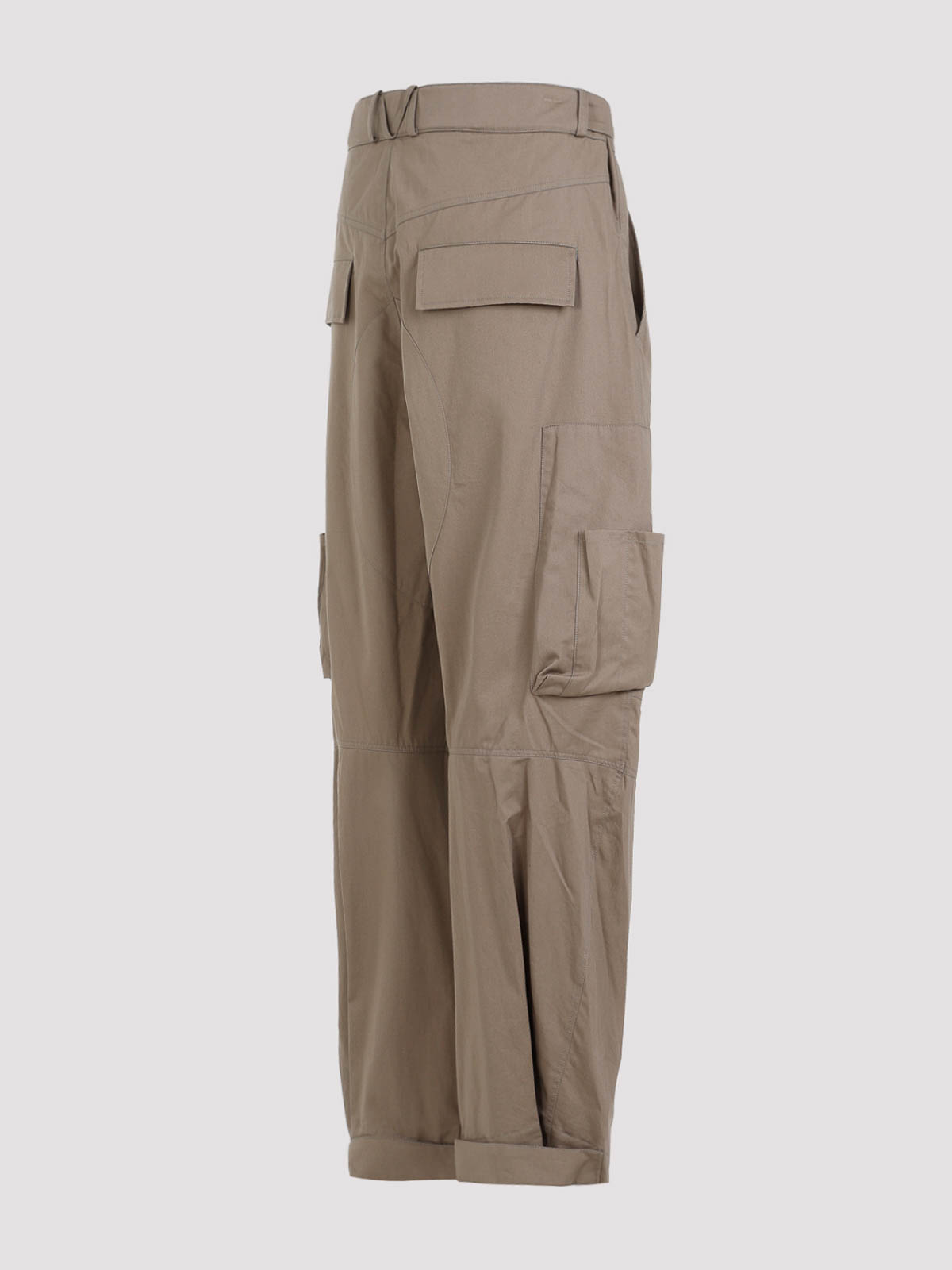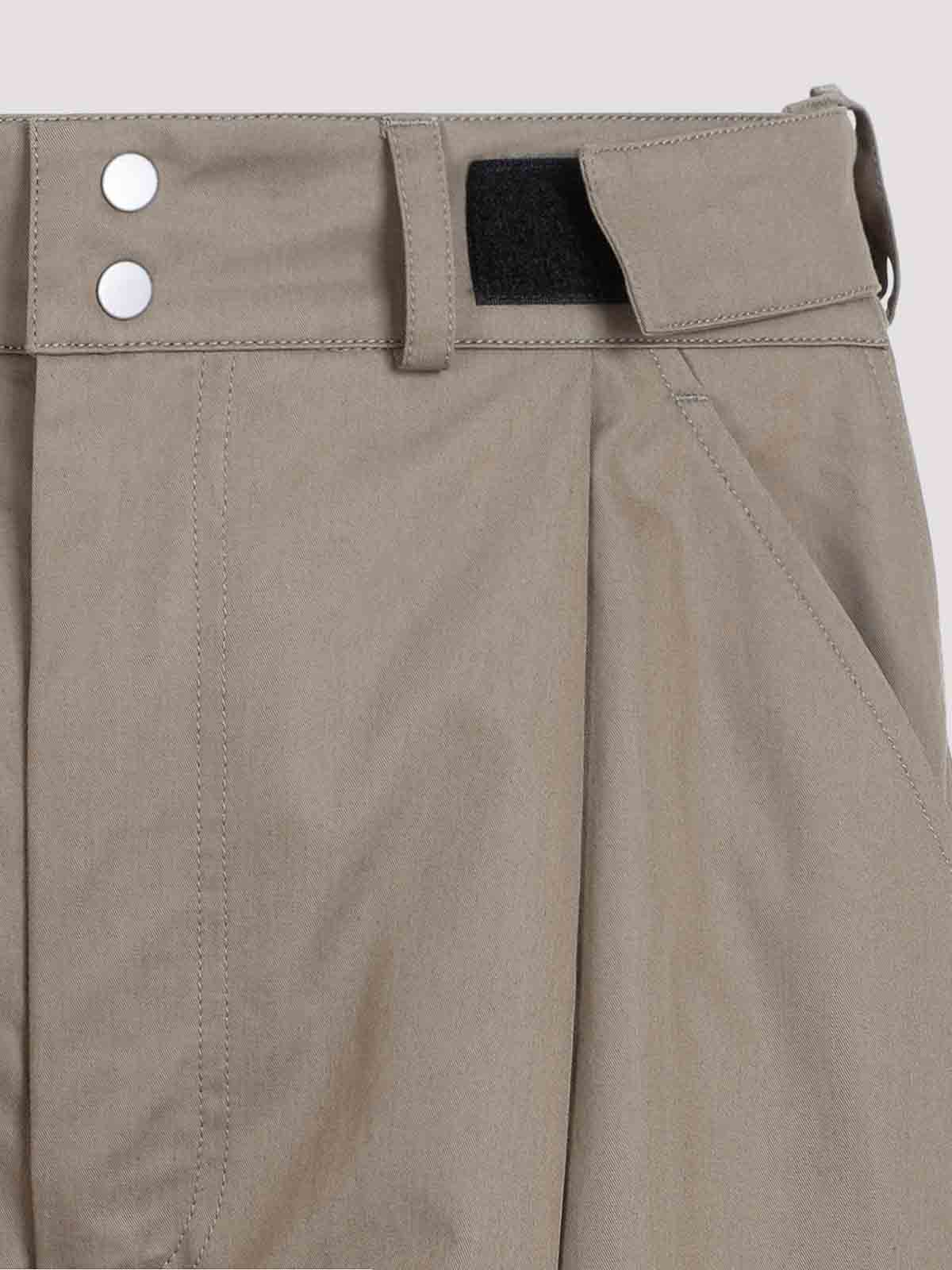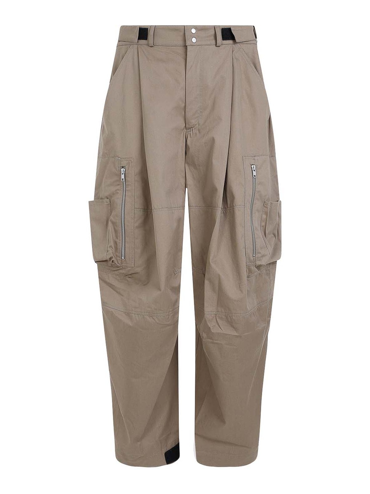 Mordecai cargo mud cotton pants. mud cotton, cargo-inspired design, front magnetic snap buttons and zip closure, adjustable velcro straps on the waistline and on the hems, signature belt loops on the back, exaggerated darts, front pockets and zipper and cargo pockets along the legs, back flap pockets, relaxed fit.