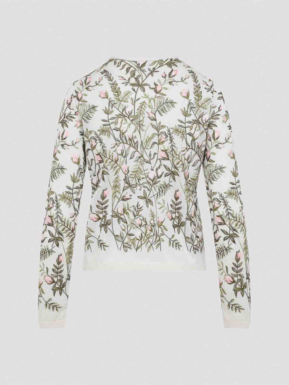 Giambattista valli ivory and cardigan crafted from ivory and floral all over round neckline button long sleeves ribbed edges straight hem