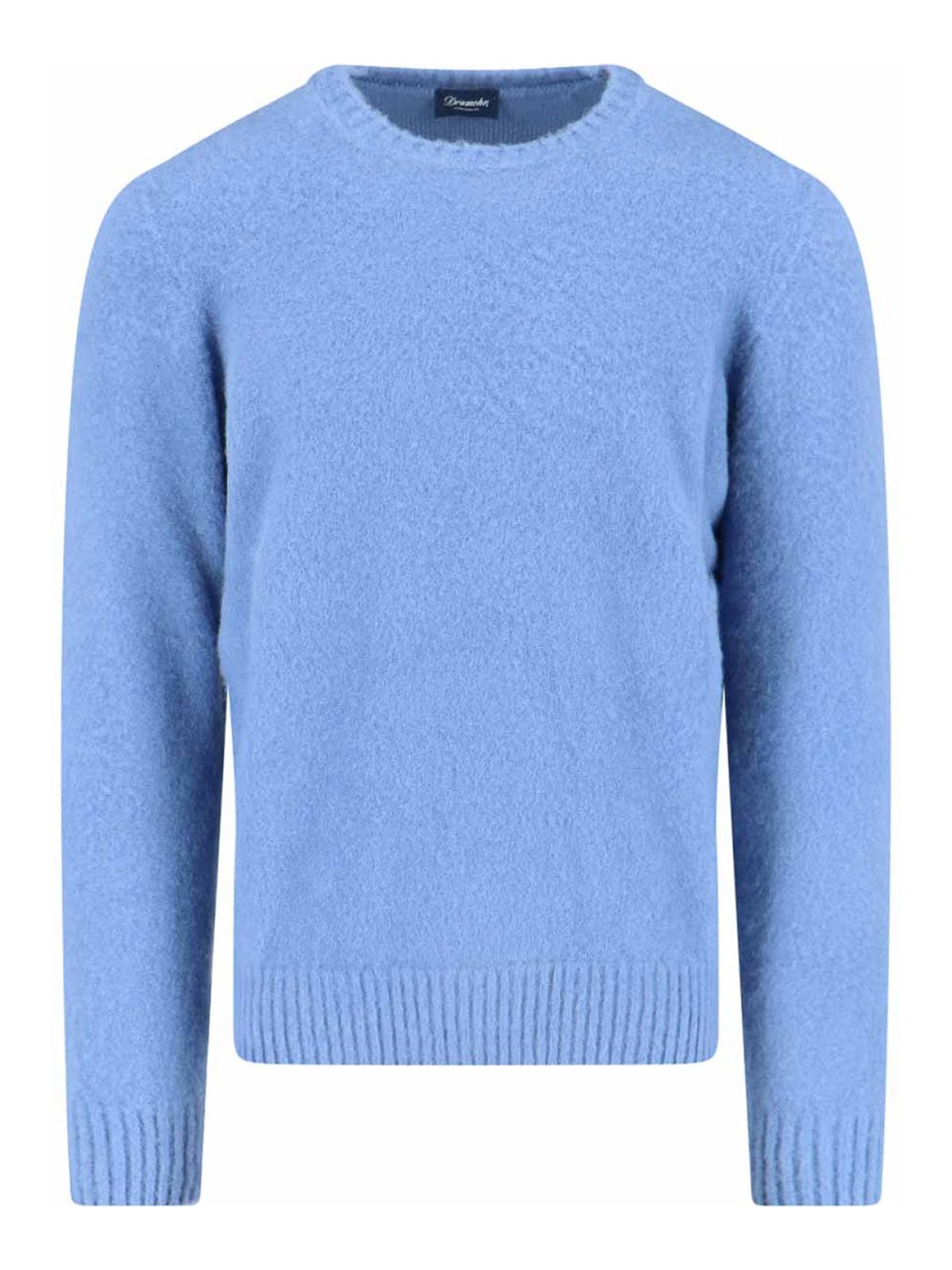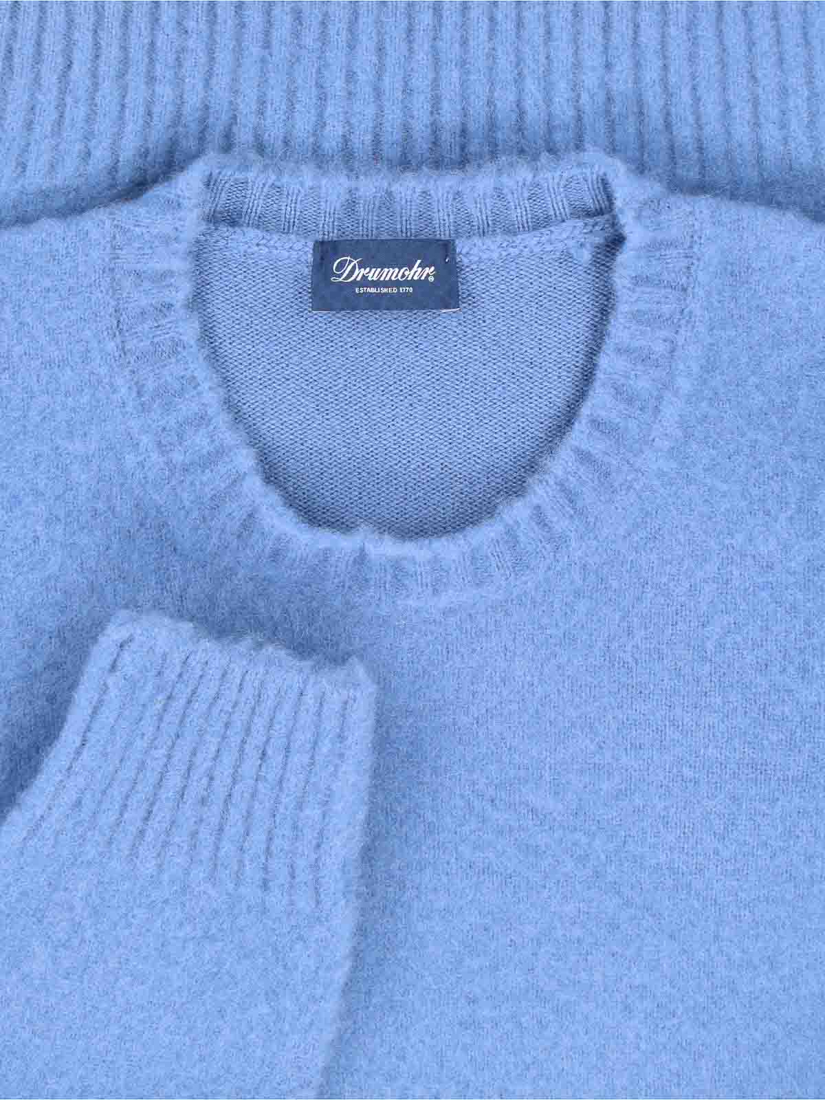 Drumohr cashmere sweater, light blue, crew neck, long sleeves, ribbed finishes, straight hem.