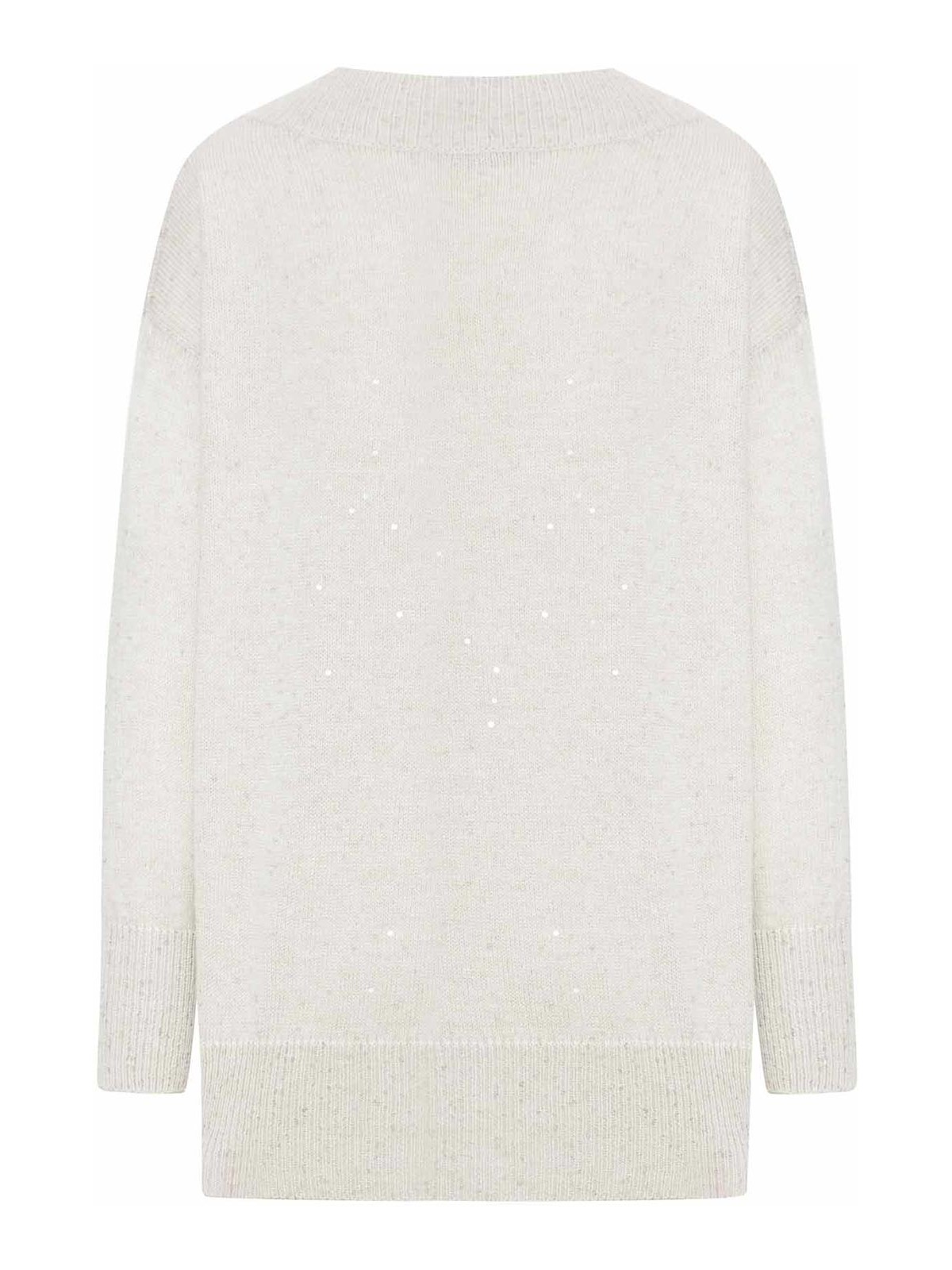 V-neck-ribbed hem cuffs and collar-sequin -oversize-color madreperla