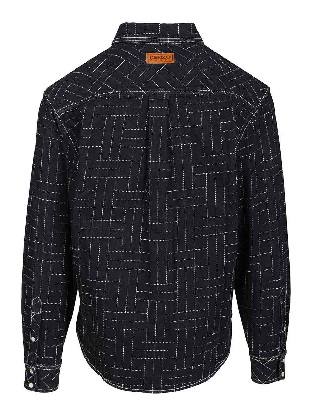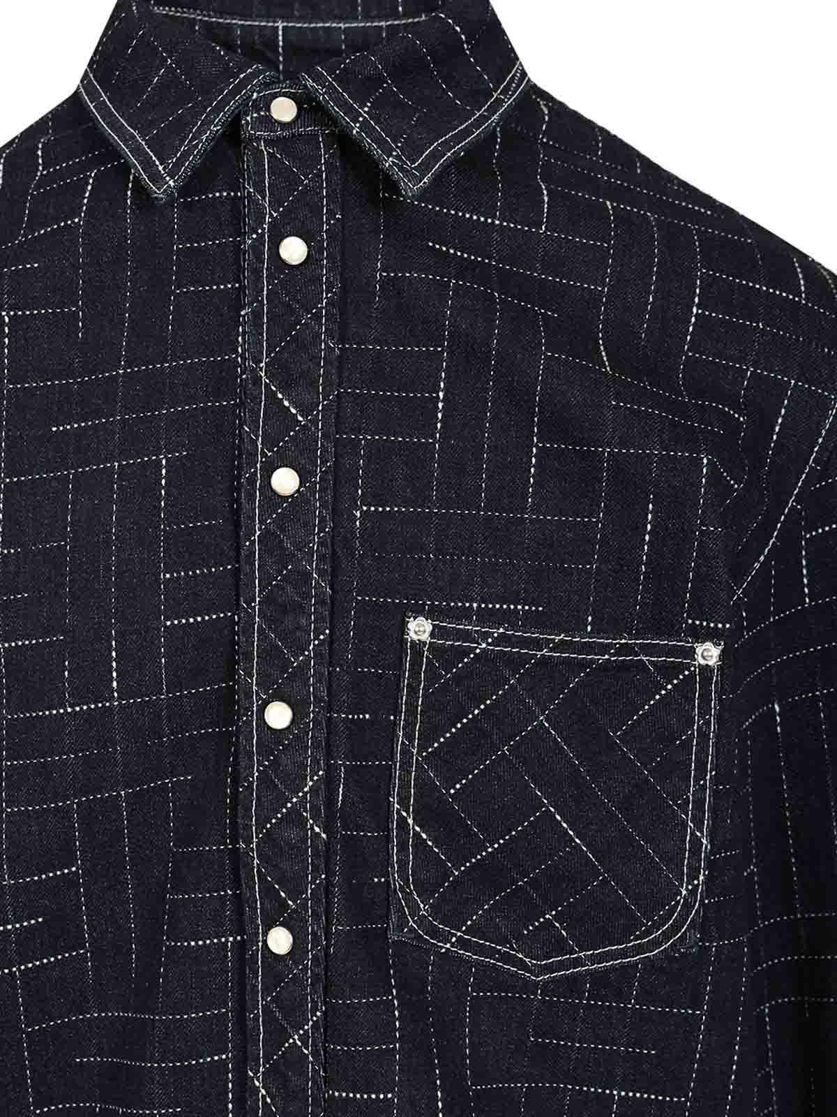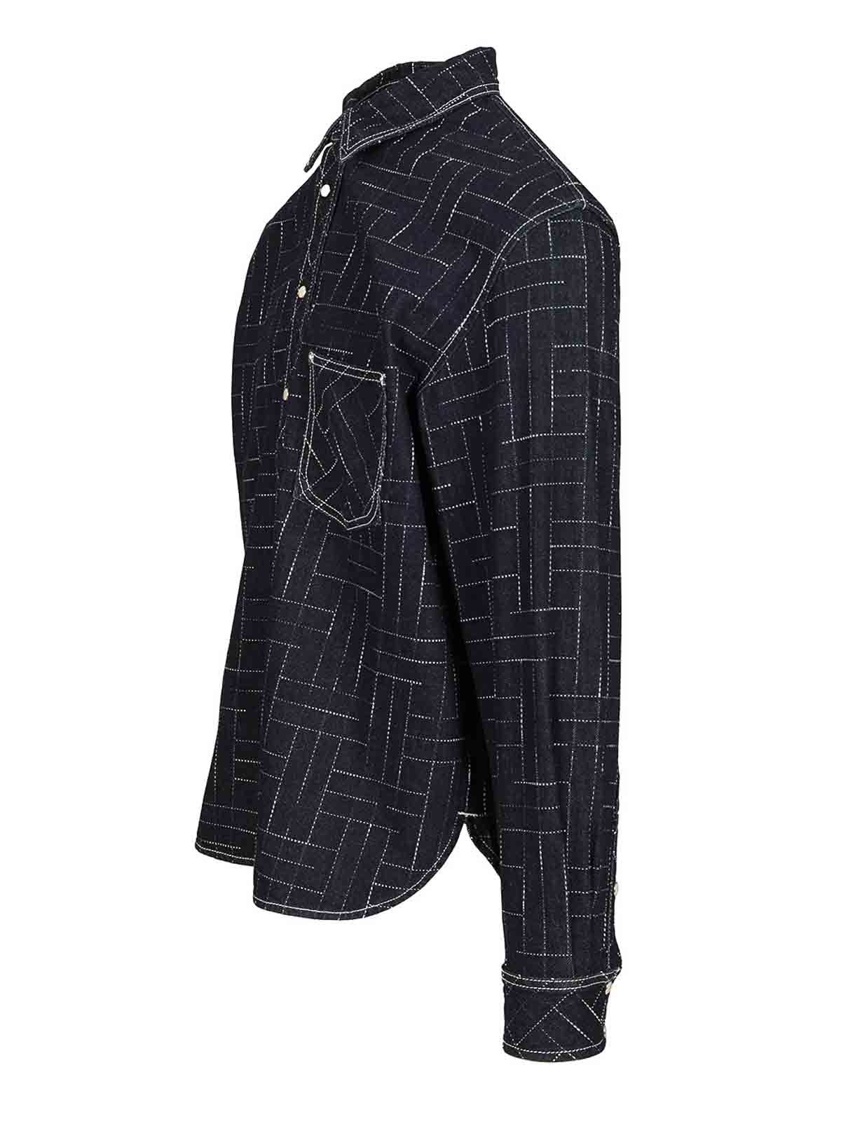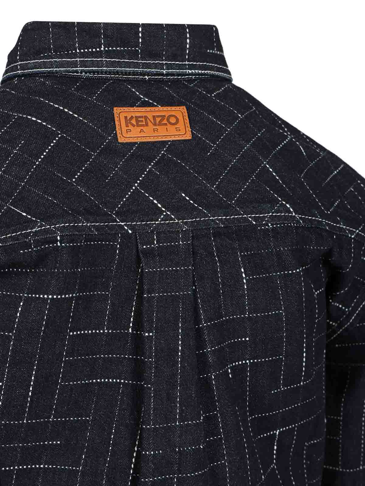 Casual weave shirt in denim by kenzo with classic collar button contrasting stitching and patch pocket on the chest