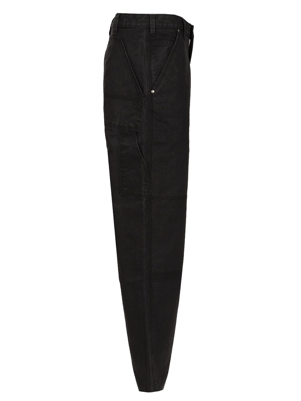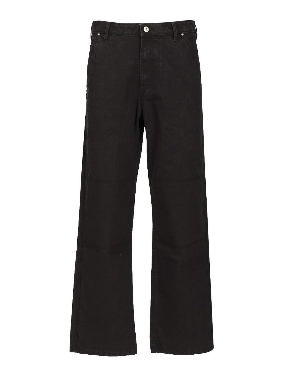 Fabric made with 50% cotton produced by us farmers using soil carbon-containing farming practices and 50% organic cotton waistband with belt loops button fly open hand pockets with a slip pocket inside the left pocket open thigh pocket two back pockets reinforced knees for added durability embroidered logo on left thigh