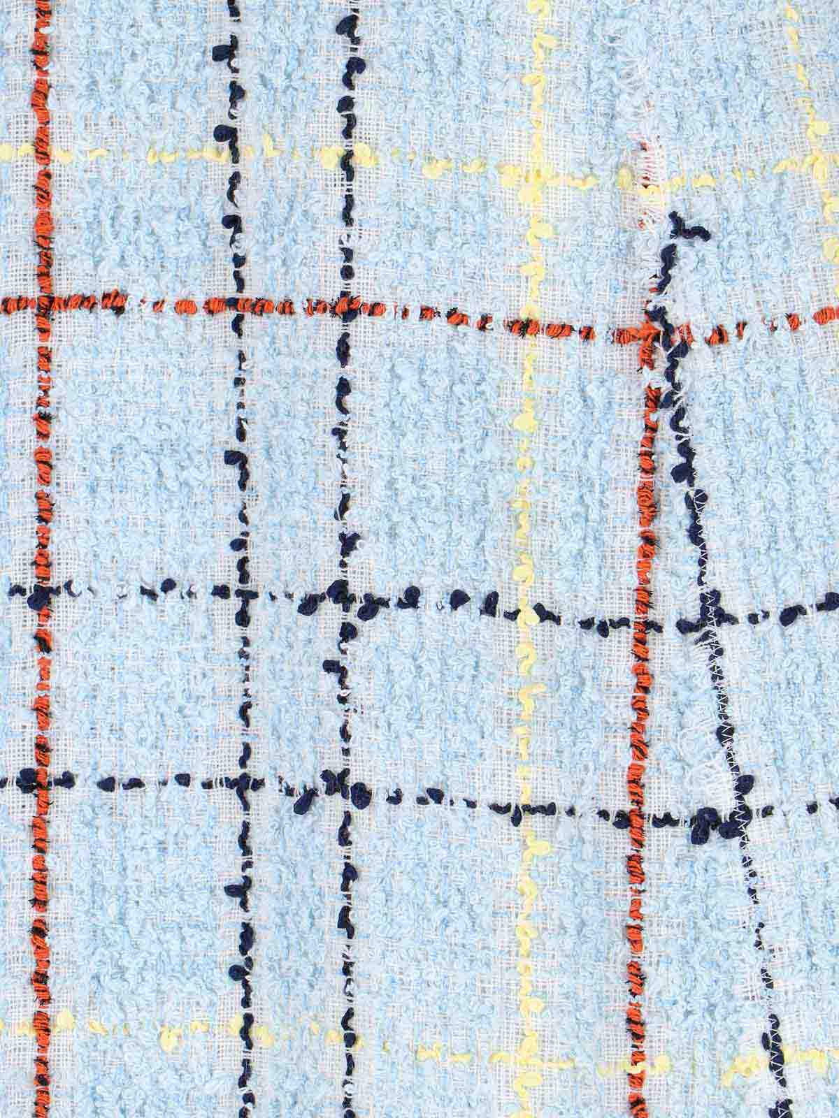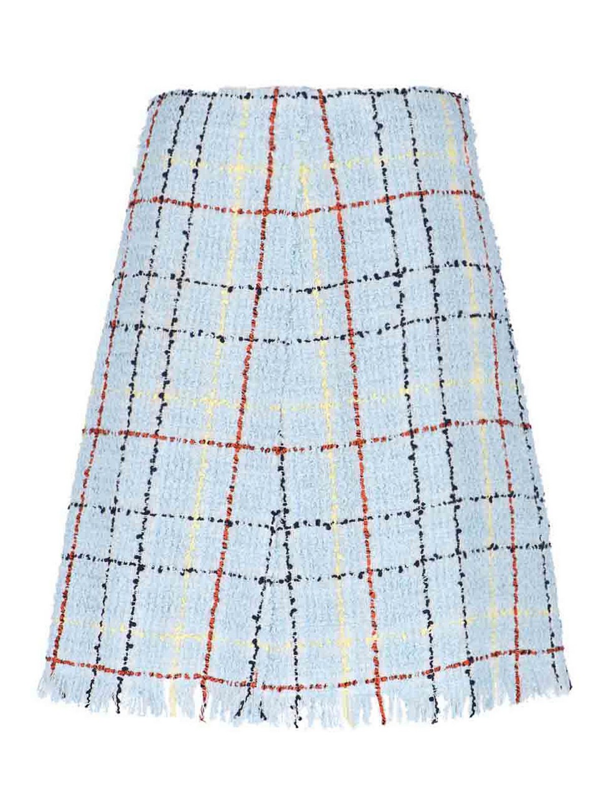 Marni checked mini skirt in light blue tweed red, black and yellow details high waist side zip closure fringe detail on the bottom