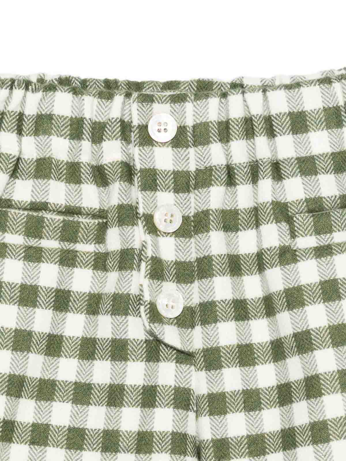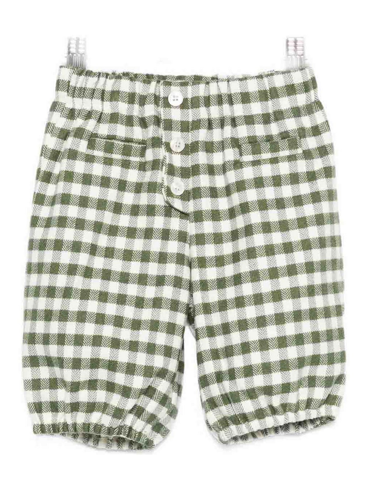 Green checked trousers, button closure, elasticated waist, two front pockets