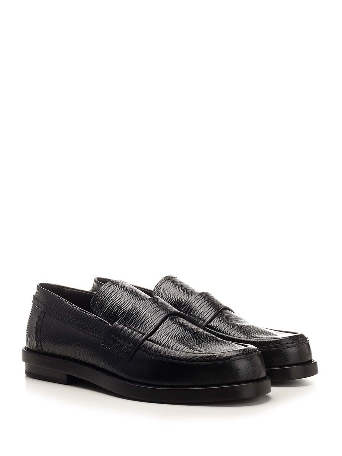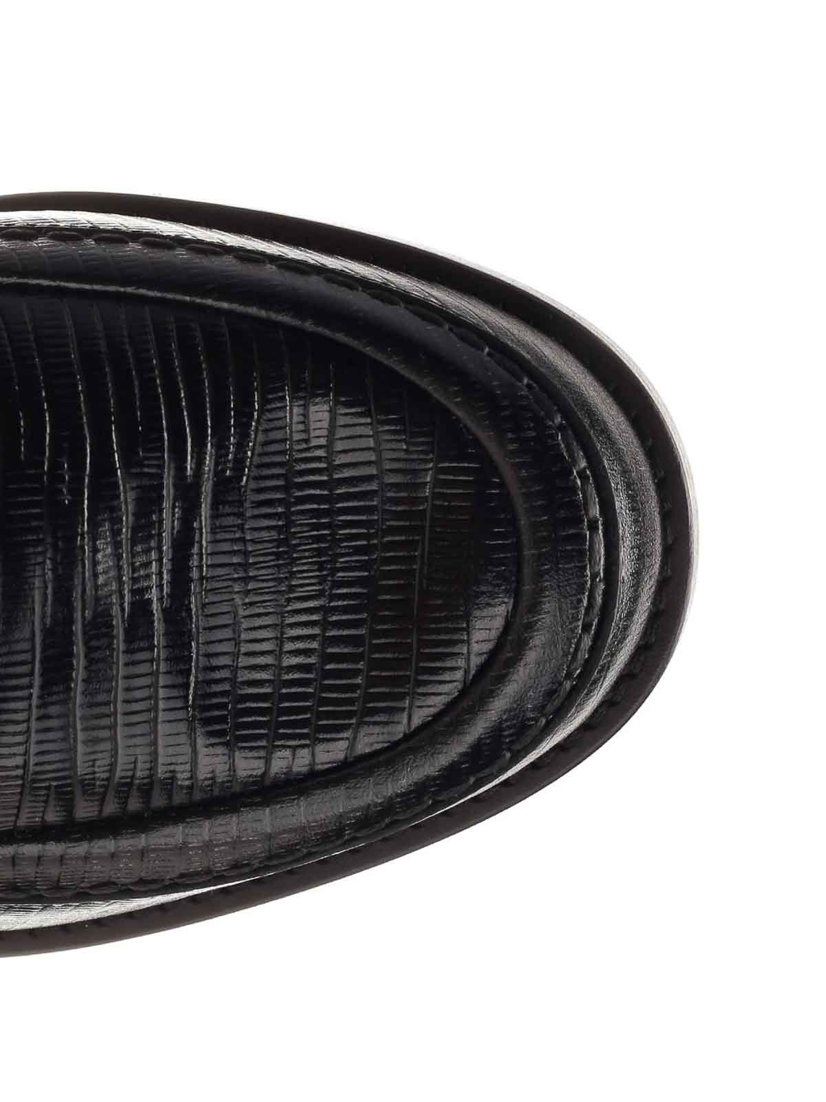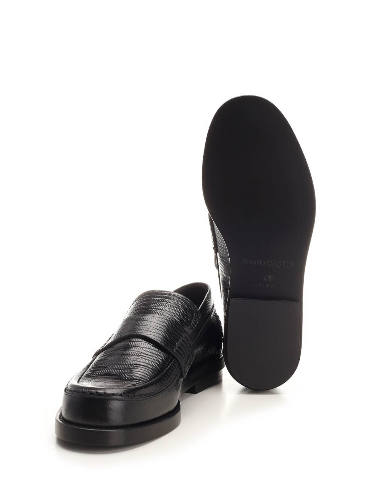 Black leather classic design loafers from alexander mcqueen with lizard skin effect print.