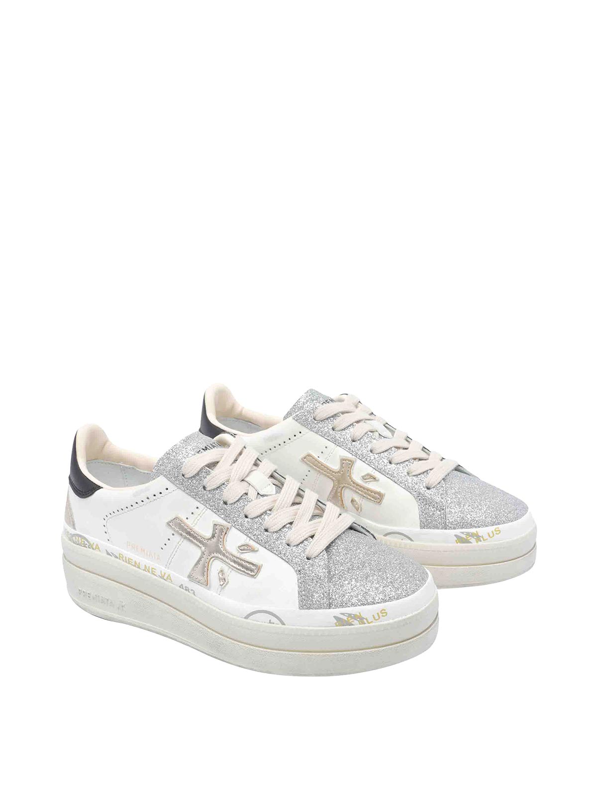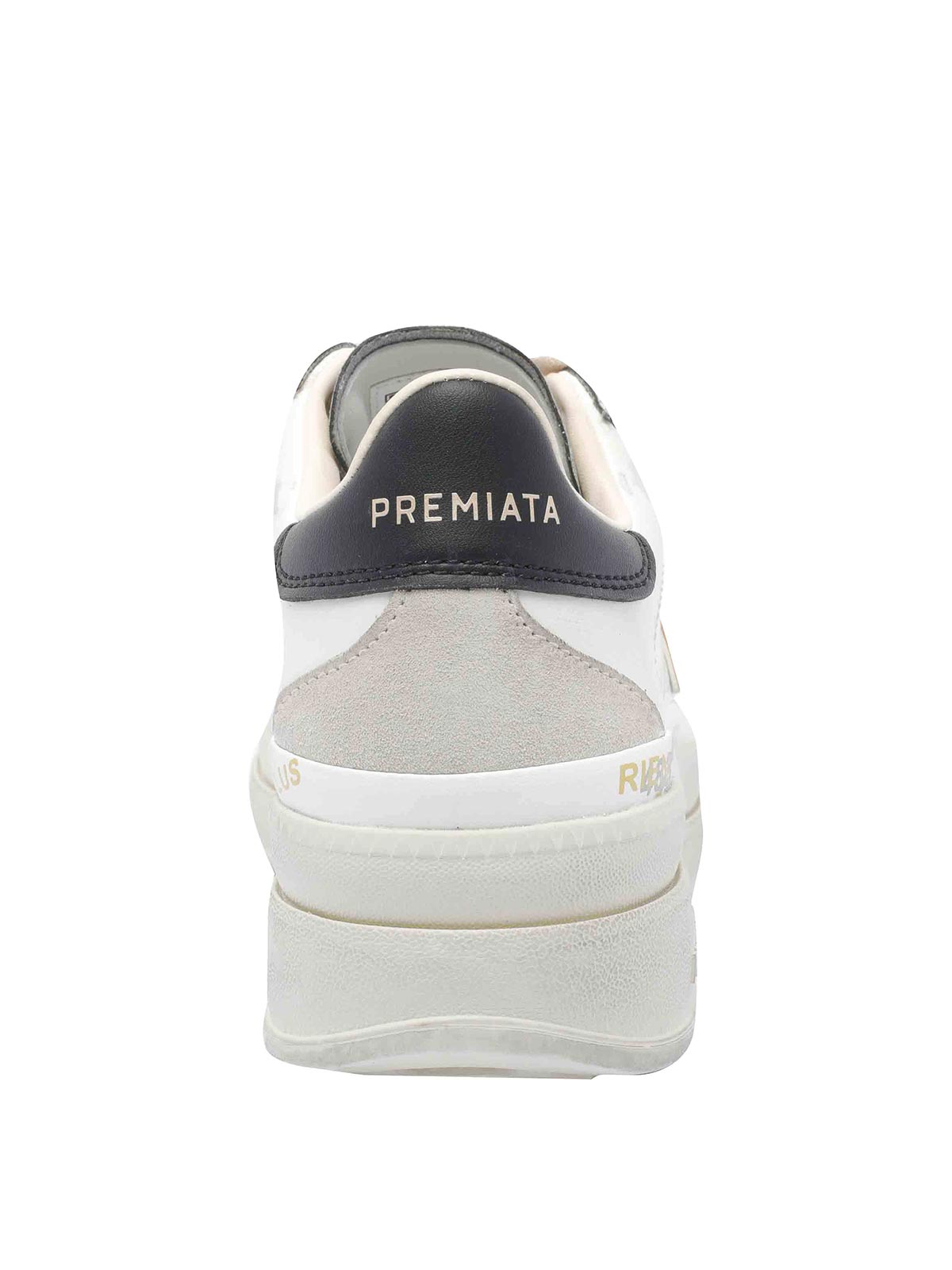 Premiata grey and white claudia sneakers round toe lateral logo and on back laces