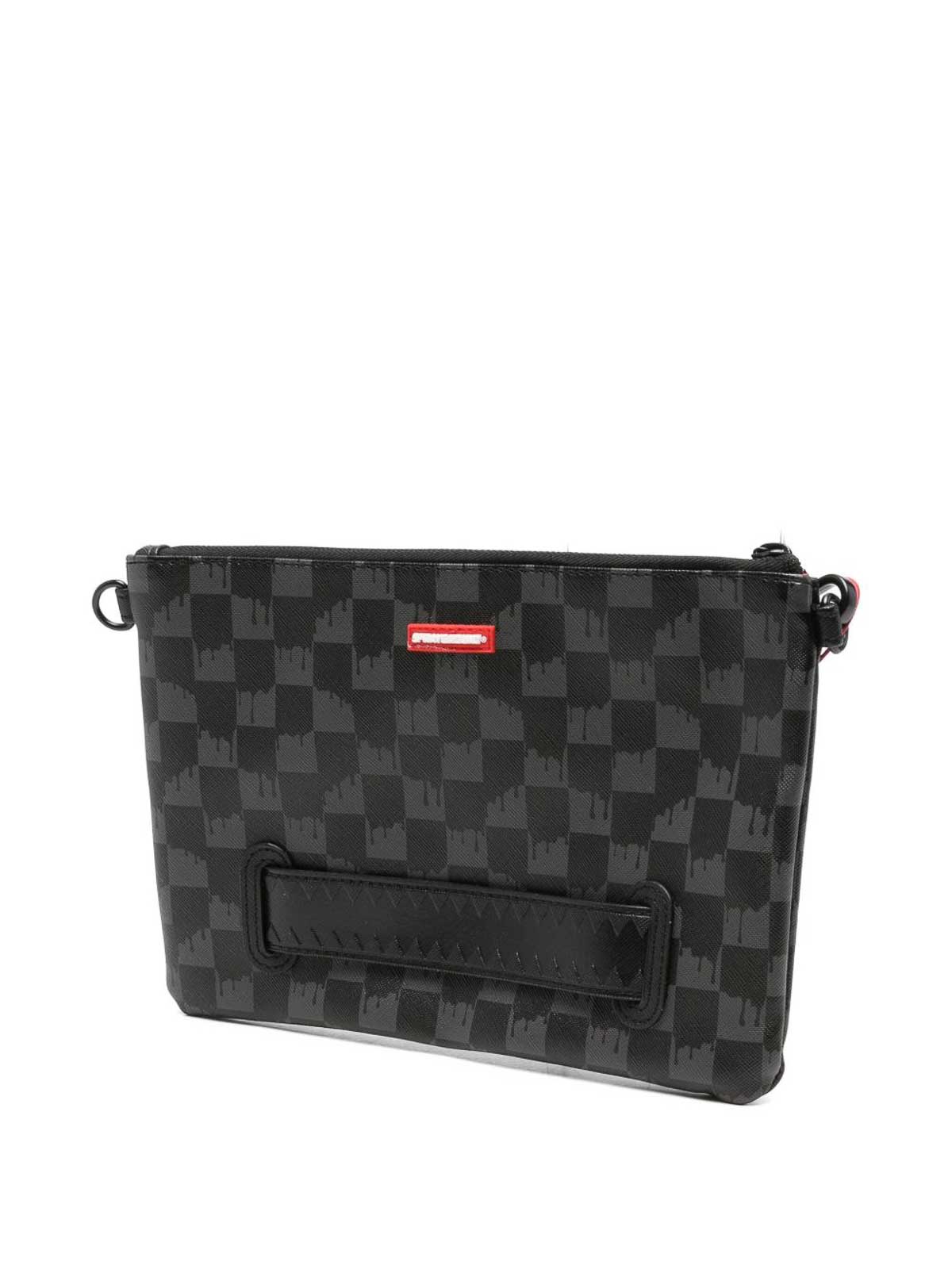 Black check pattern shark-tooth zip top detachable shoulder strap