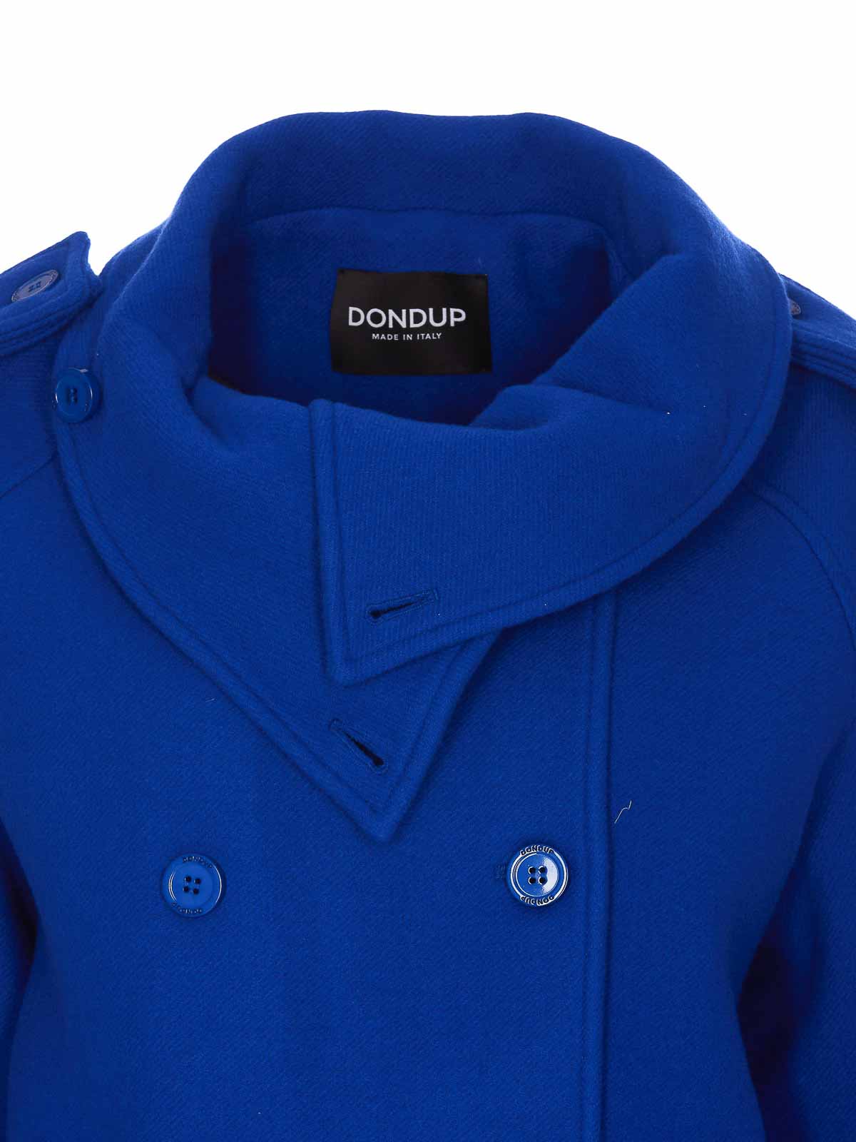 Dondup blue coat double breast button closure pockets reverse detail short model