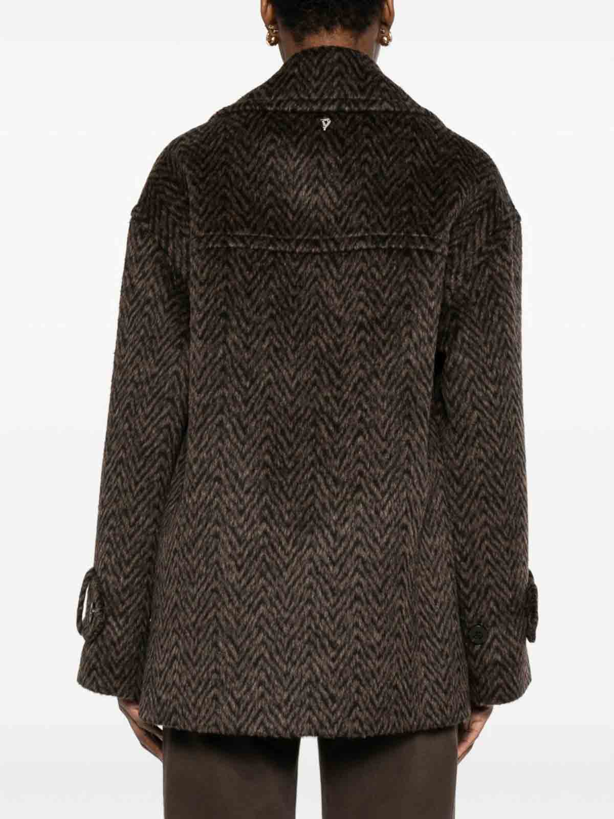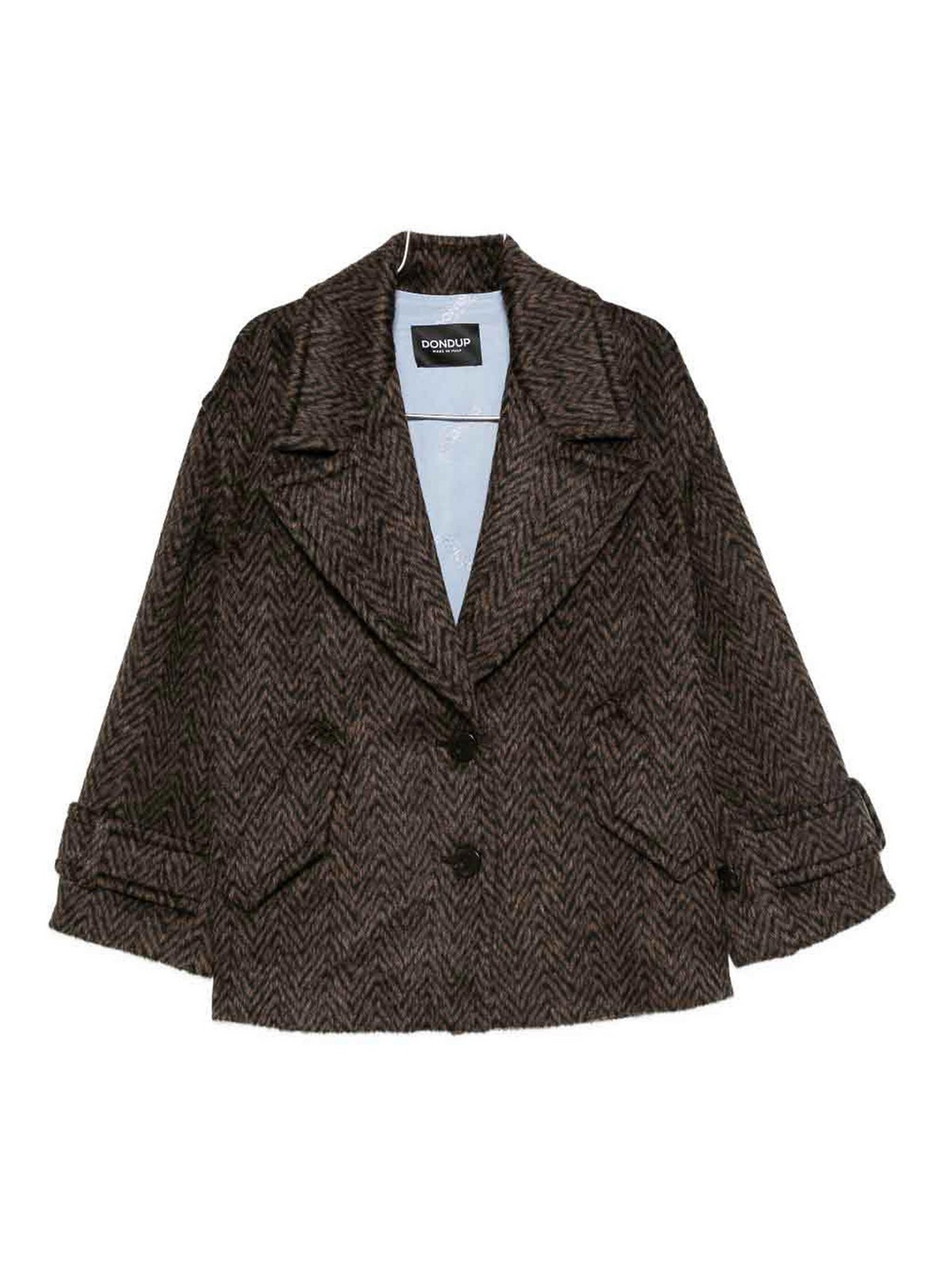 Brown herringbone pattern notched lapels button fastening long sleeves