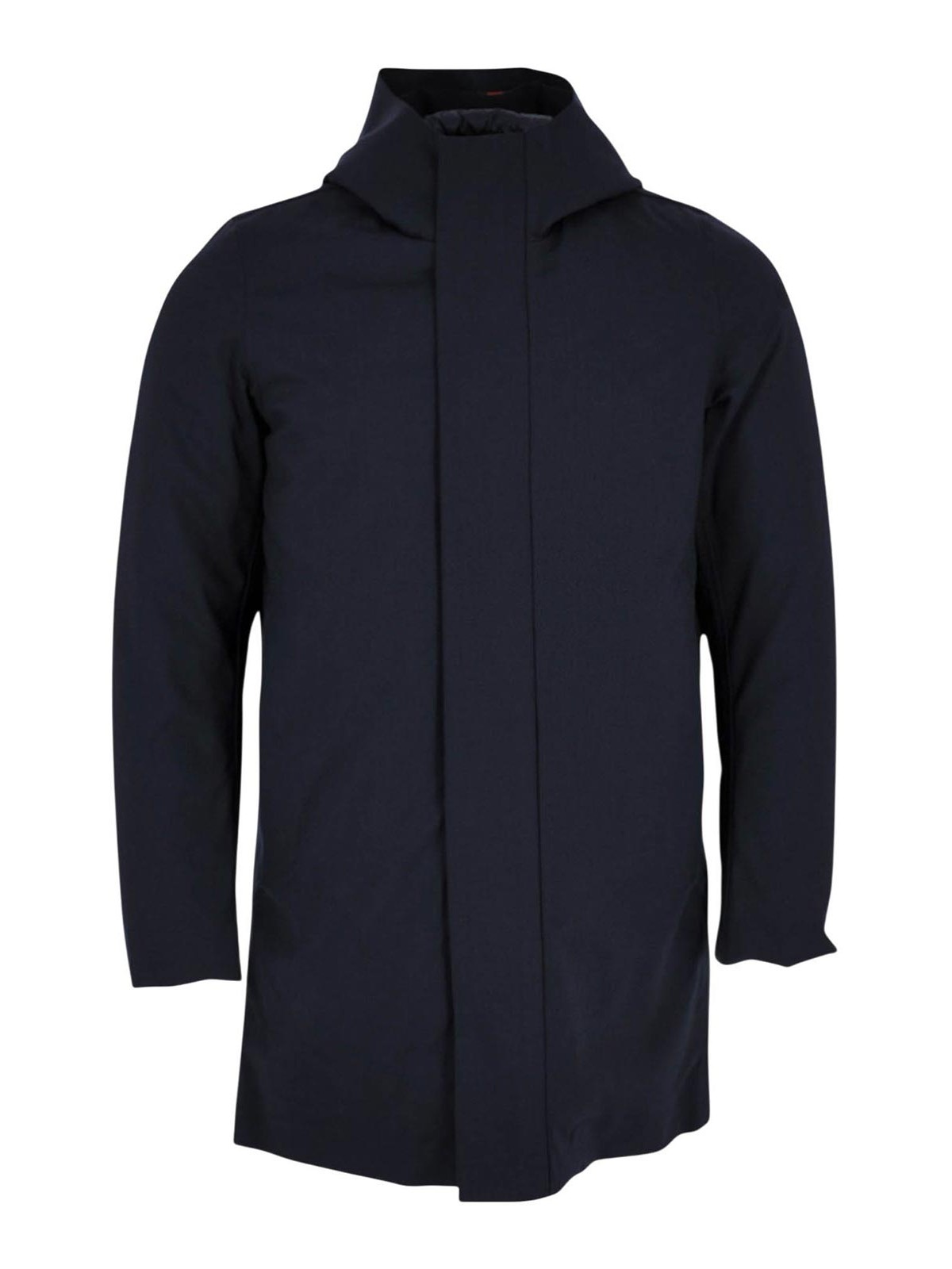 Rrd tertile floating eskimo jkt flannel with technical membrane the iconic eskimo design reinterpreted by rrd in a sophisticated and hi-tech key through a combination of sartorial elegance and advanced functionality made of flannel coupled with a technical membrane the garment combines protection and refinement in an impeccable balance the completely heat-taped construction and the exclusive floating shield system ensure waterproof comfort and a regular and fluid fit the heat-sealed tubular channels they contain the light and warm duck down padding which effectively insulates from the cold while keeping the garment light, the large padded hood, the side pockets with pressure flap and the front zip with hidden double slider complete a clean and modern silhouette, iconic items such as the pocket with double orange welt and the tag designed in Tuscany together with the black micro-injection RRD logo on the left underline the care and identity of the brand in flannel combined with a technical membrane, fully heat-taped construction, floating shield technology for maximum comfort and fit fixed padded hood on the front with double-slider zip and pressure flap side pockets with duck down flap / micro-injected rrd logo on the left