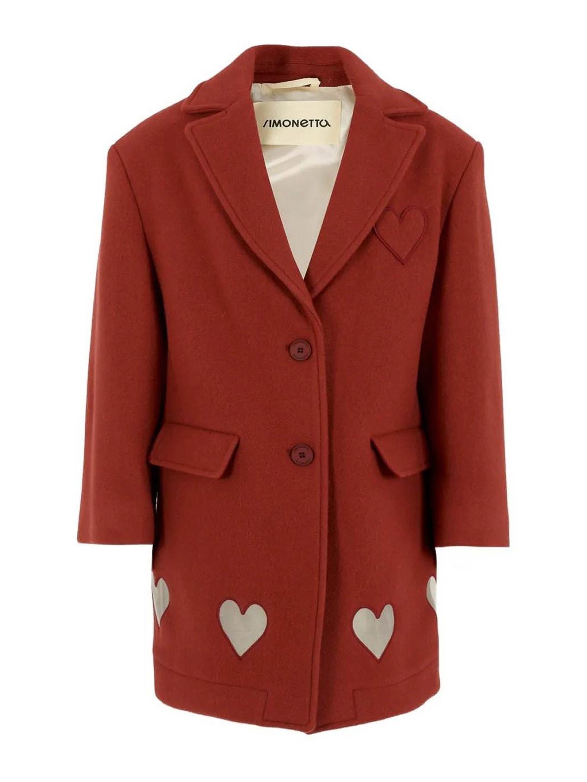 Coat with mixed red transparencies with heart buttons and classic lapels