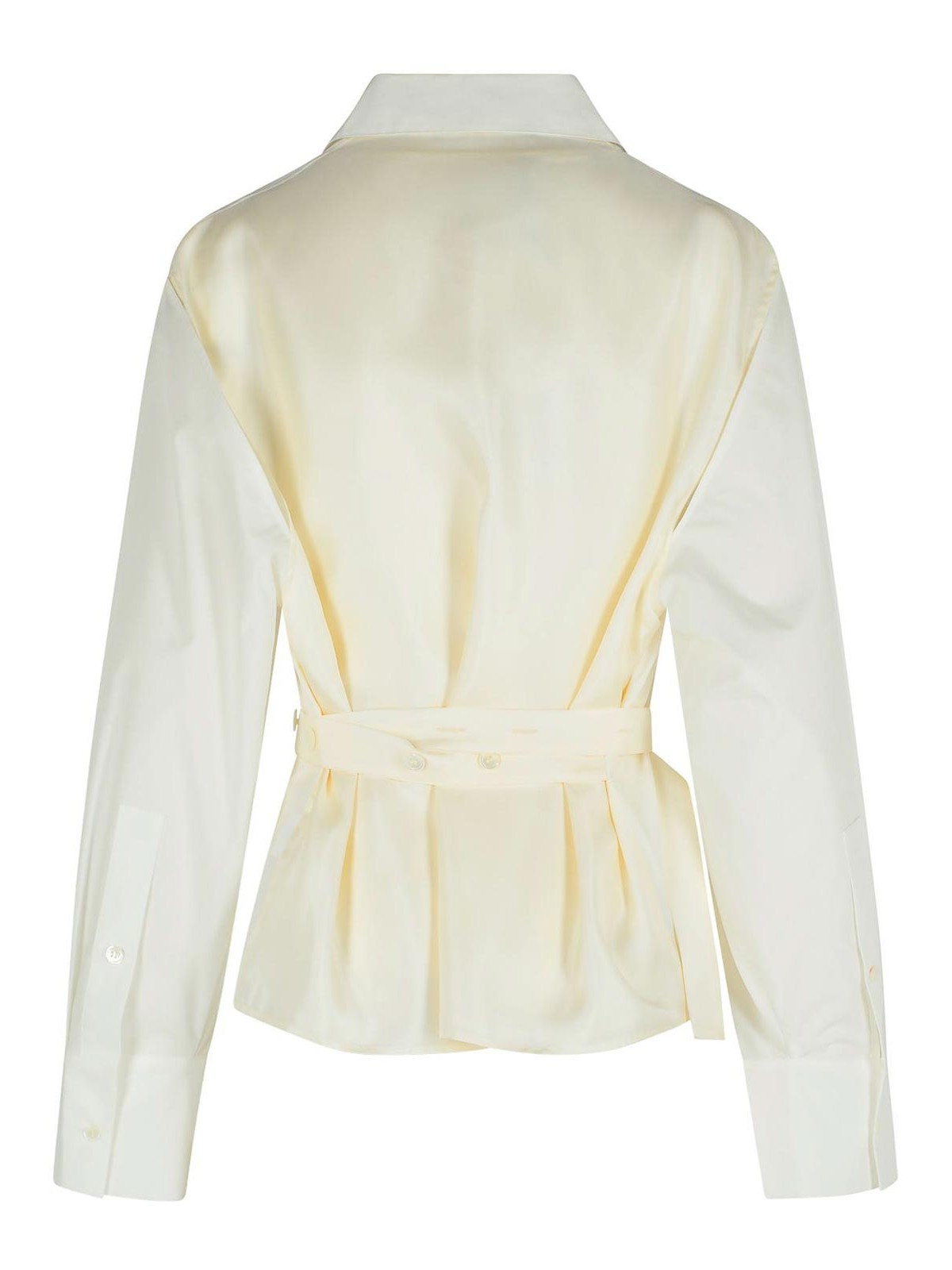Back in silk combined with poplin open armholes wraparound belt with buttons