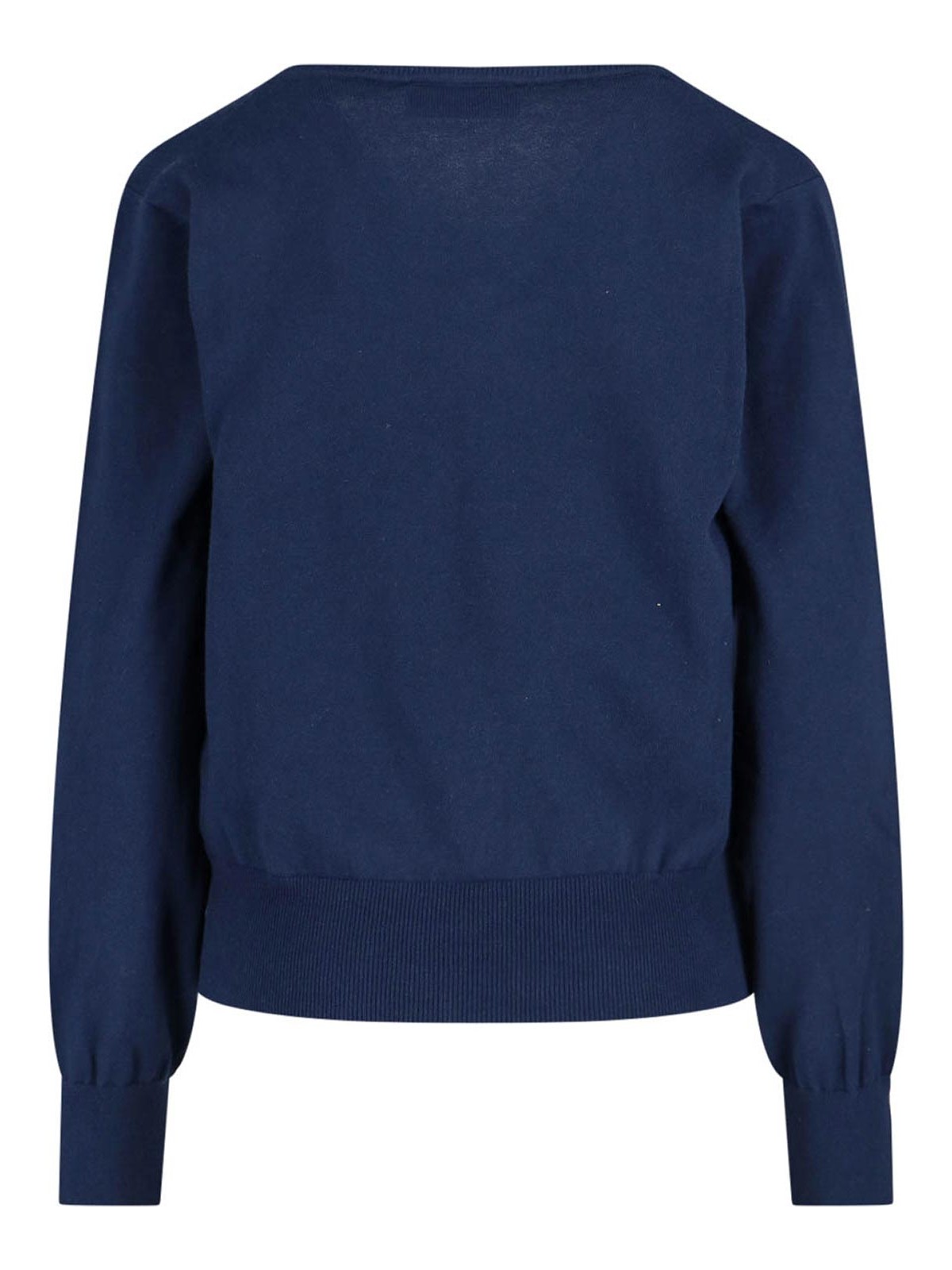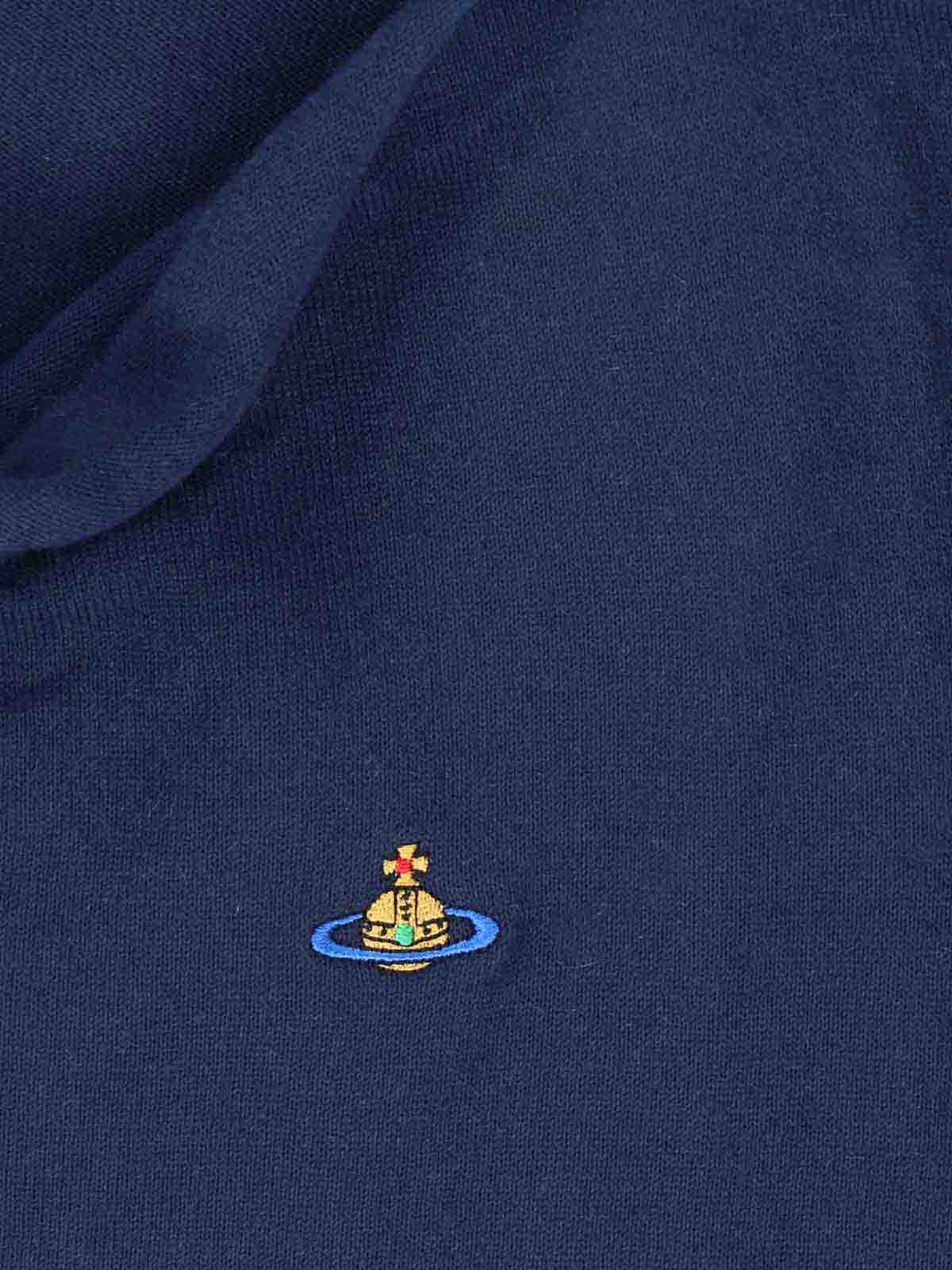 Cotton and cashmere shirt ORB Vivienne Westwood, blue, navy tonalit, round neckline, balloon sleeves, embroidery multicolor logo chest, ribbed finishes, straight hem.