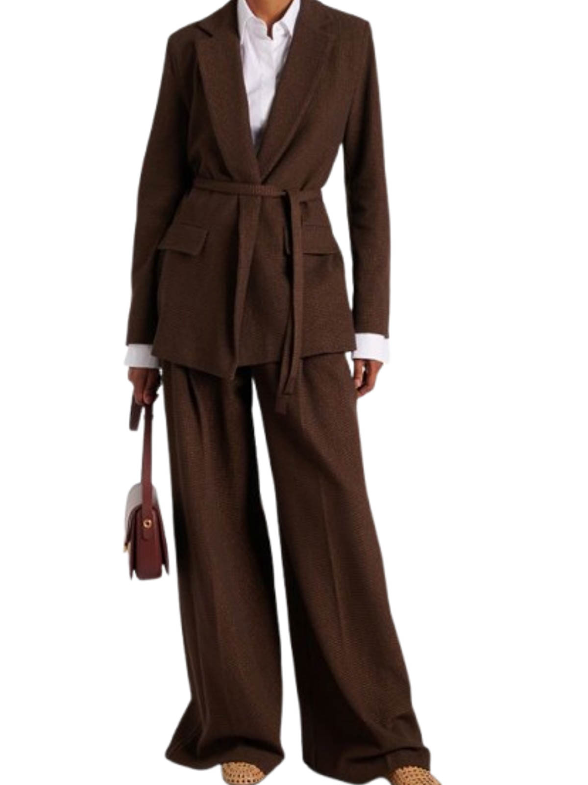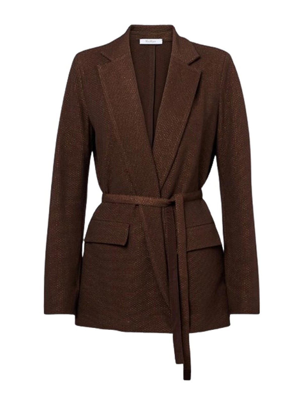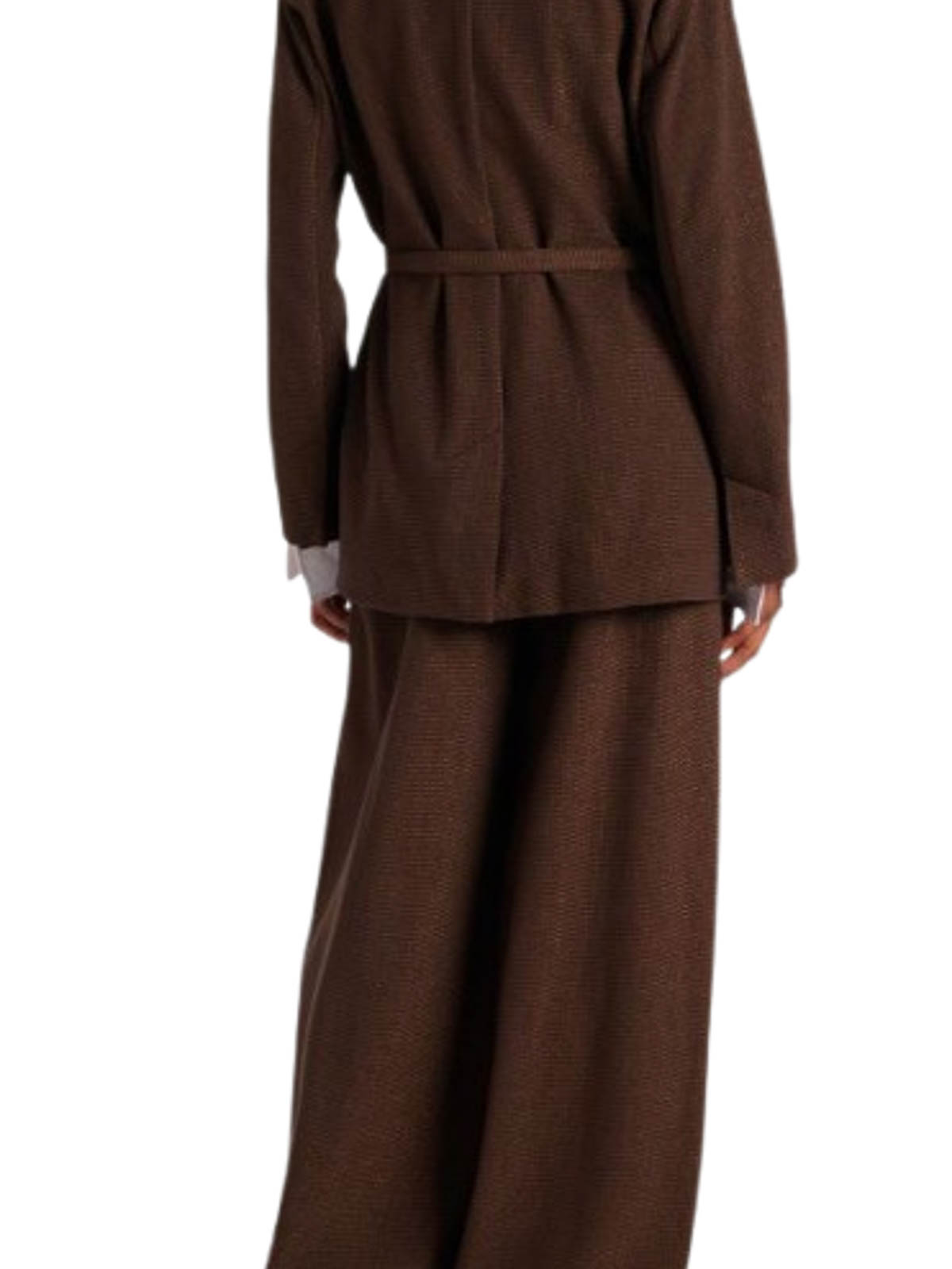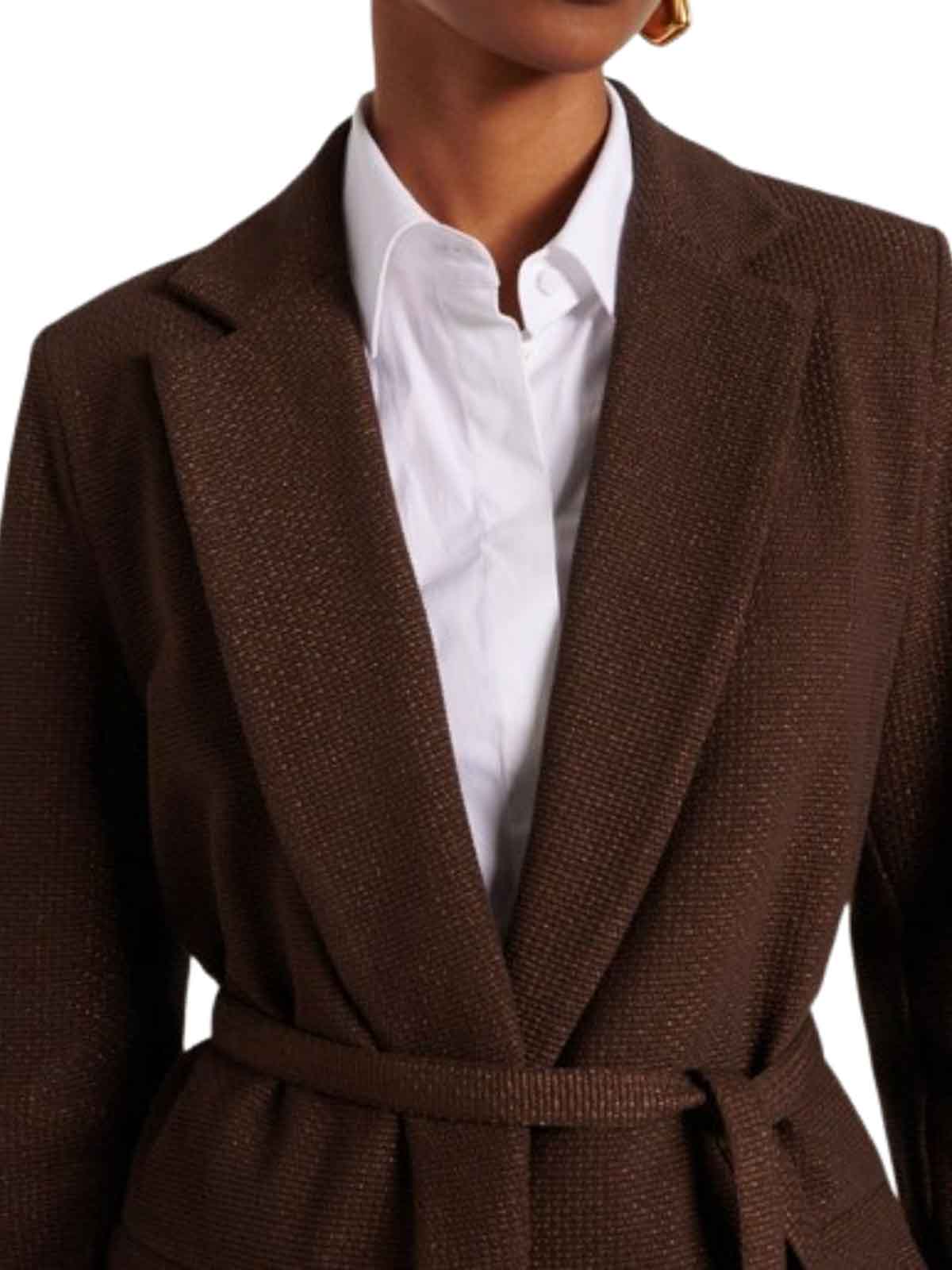 Coffee blazer in cotton blend jacquard the model features a central slit on the back and a matching belt