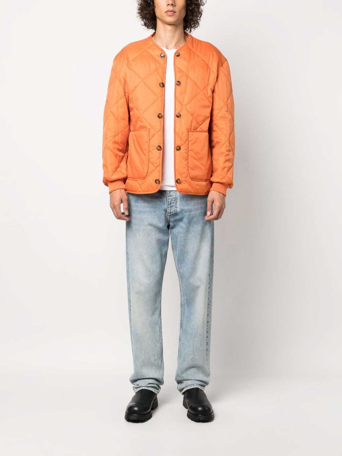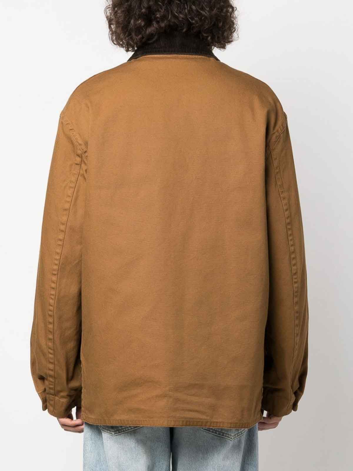 Layered-detail shirt jacket from woolrich featuring tobacco brown two separate pieces layered design straight-point collar press-stud long sleeves press-stud cuffs two flap pockets and straight hem