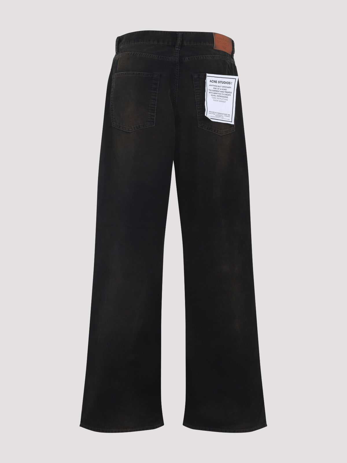 Acne studios black jeans crafted from washed black corduroy belt loops low waist, pocket design button and fly, zip branded label at the back waistband loose fit