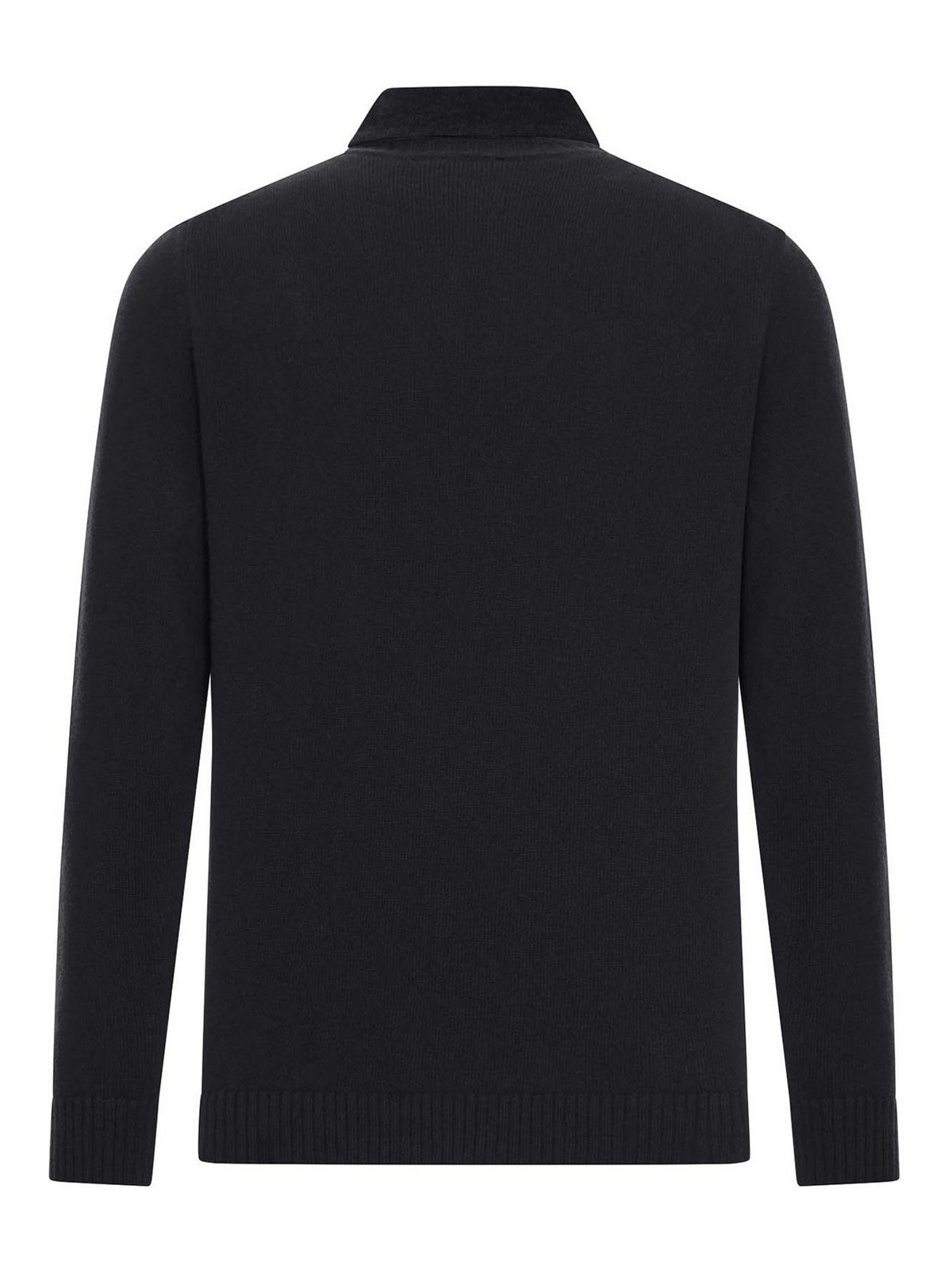 Classic button, up collar, v, neck, long sleeves, straight hem, ribbed edges, -, color black