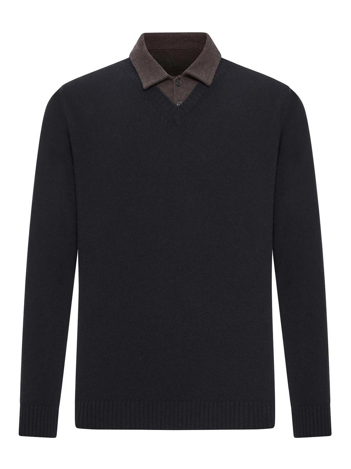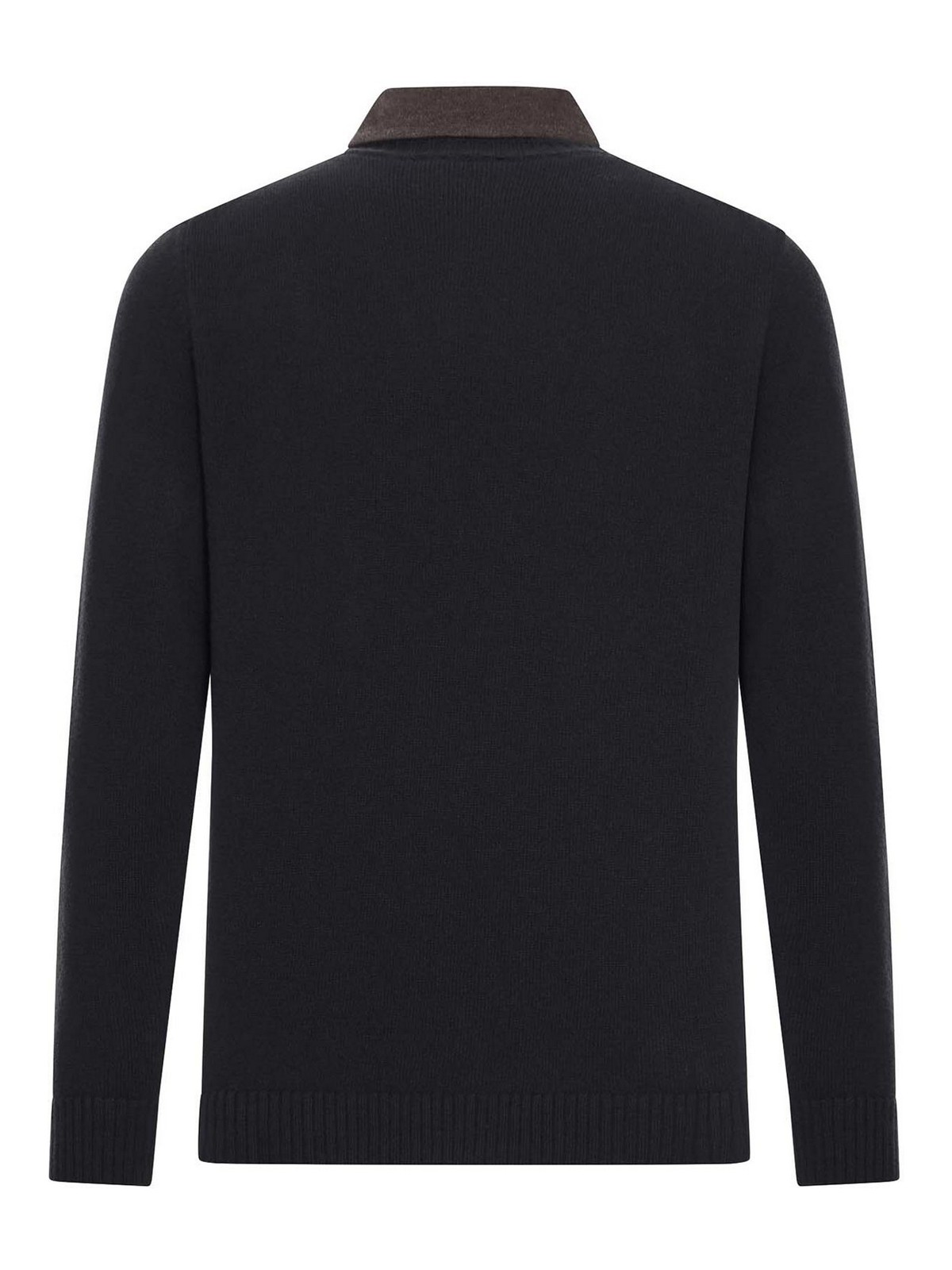 Classic button, collar, contrasting collar, v, neck, long sleeves, straight hem, ribbed edges, -, / dark brown