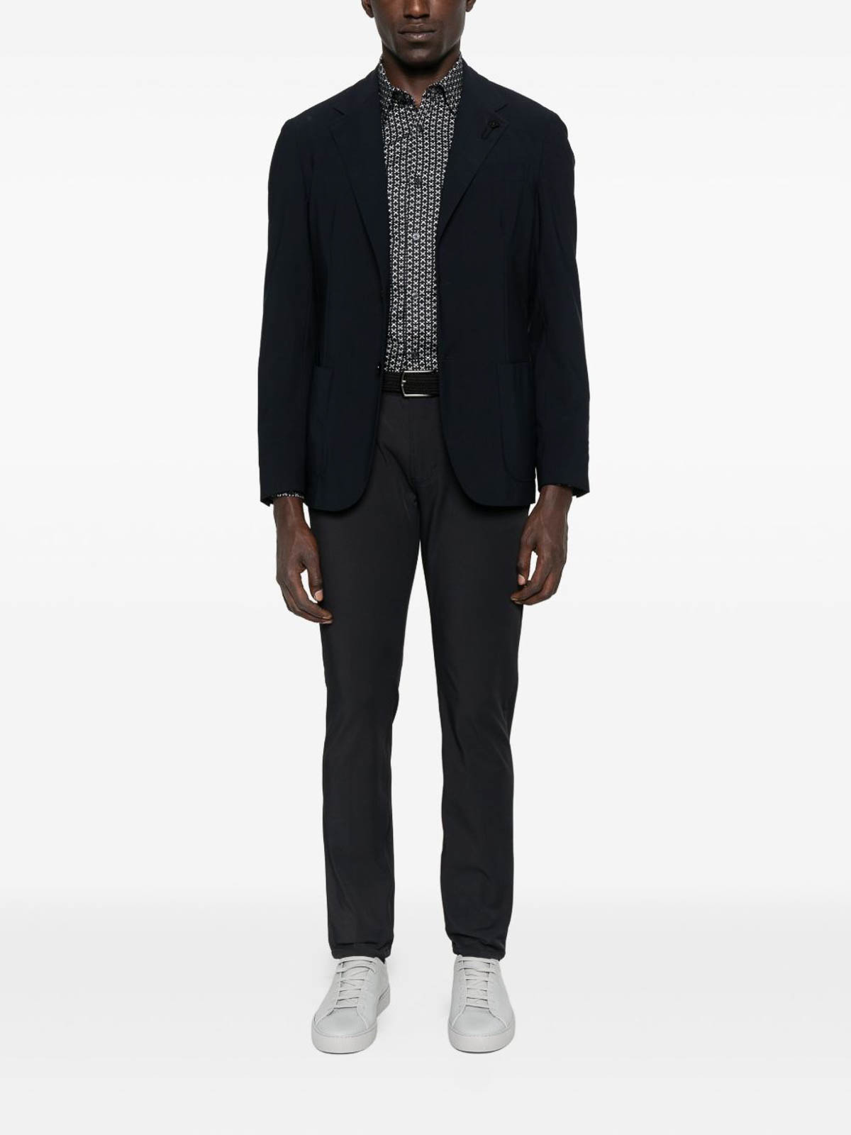 Navy blue geometric print long sleeves button fastening collared neck cotton material
