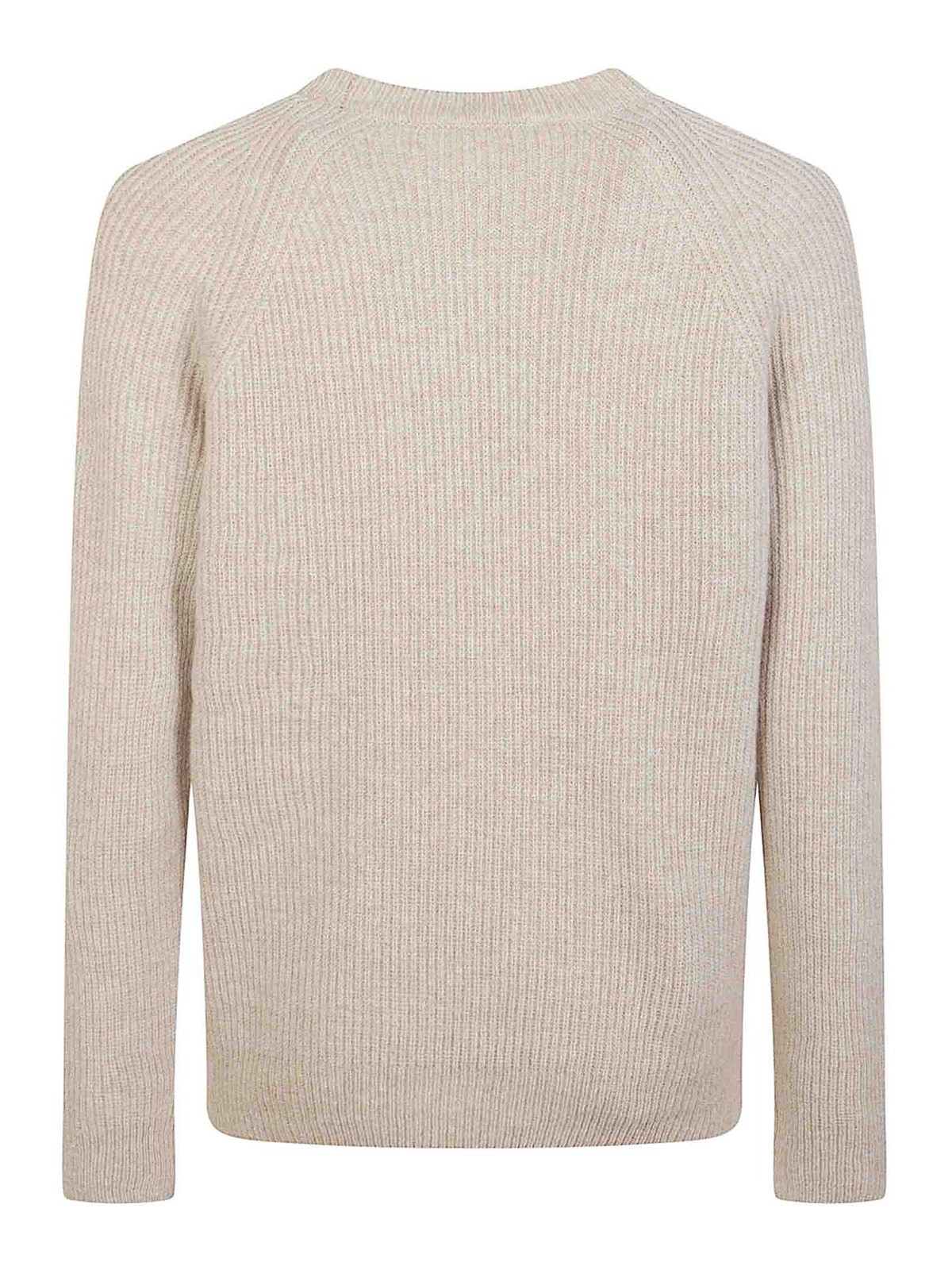 English ribbed sweater in beige wool, crew neck with ribbed hem and cuffs.