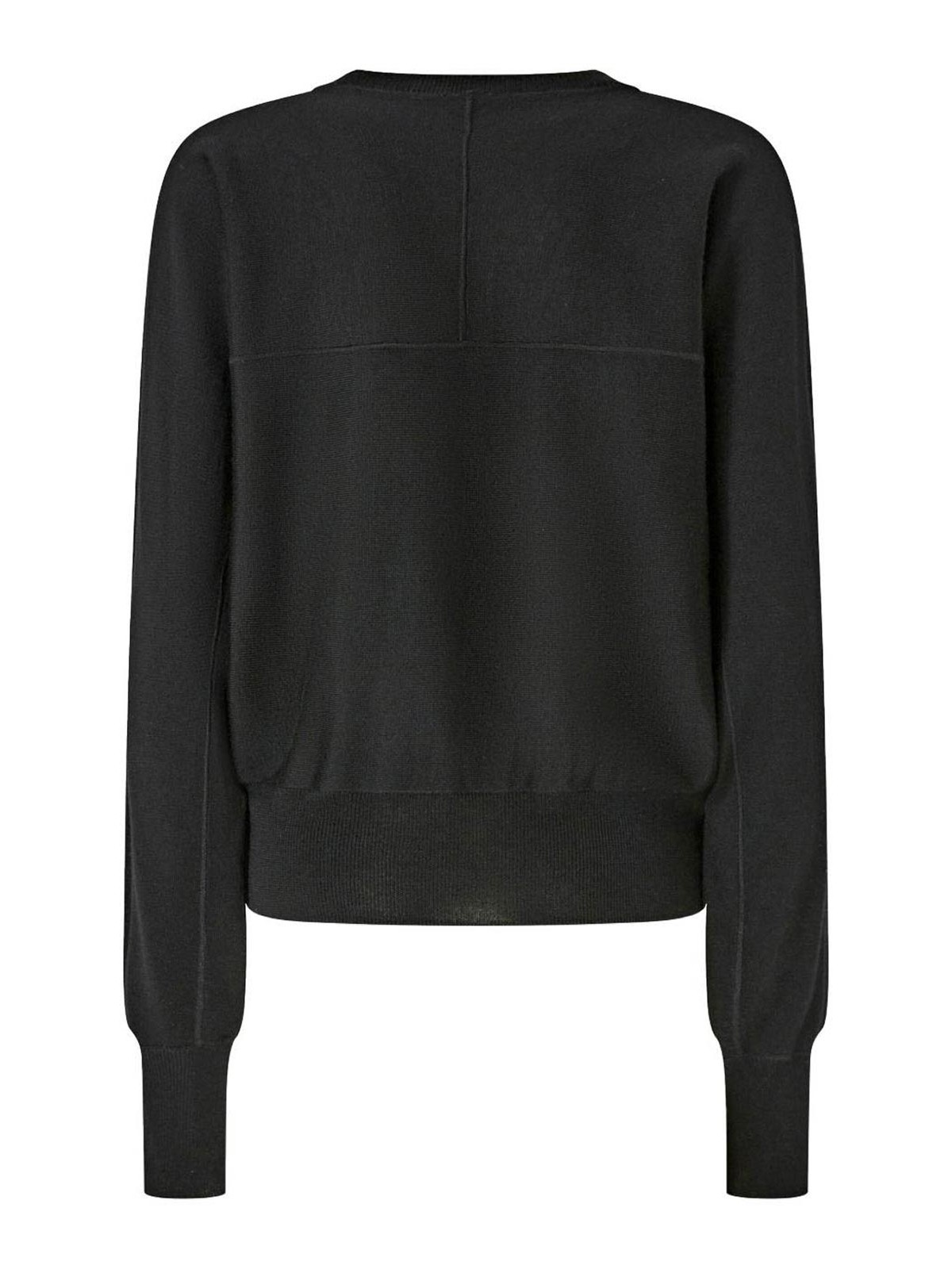 Features black crew neck love birds ribbed hem ribbed hems long sleeves
